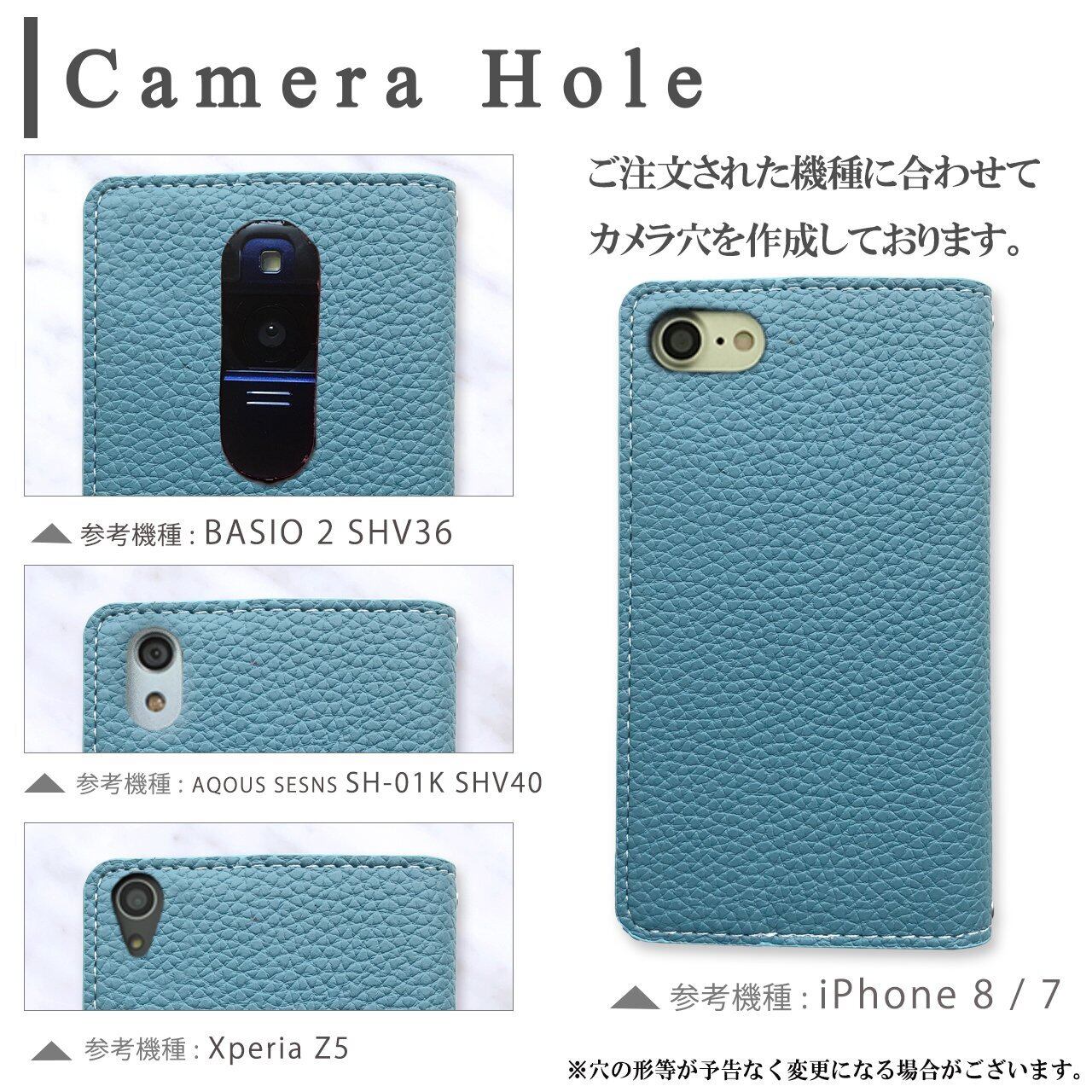機種に合わせた開口部が開いております。※電源ボタン等はケースの上から押す仕様となっております。ご了承ください。手帳型ケースはスマホ本体より大きめの作りになっております。
