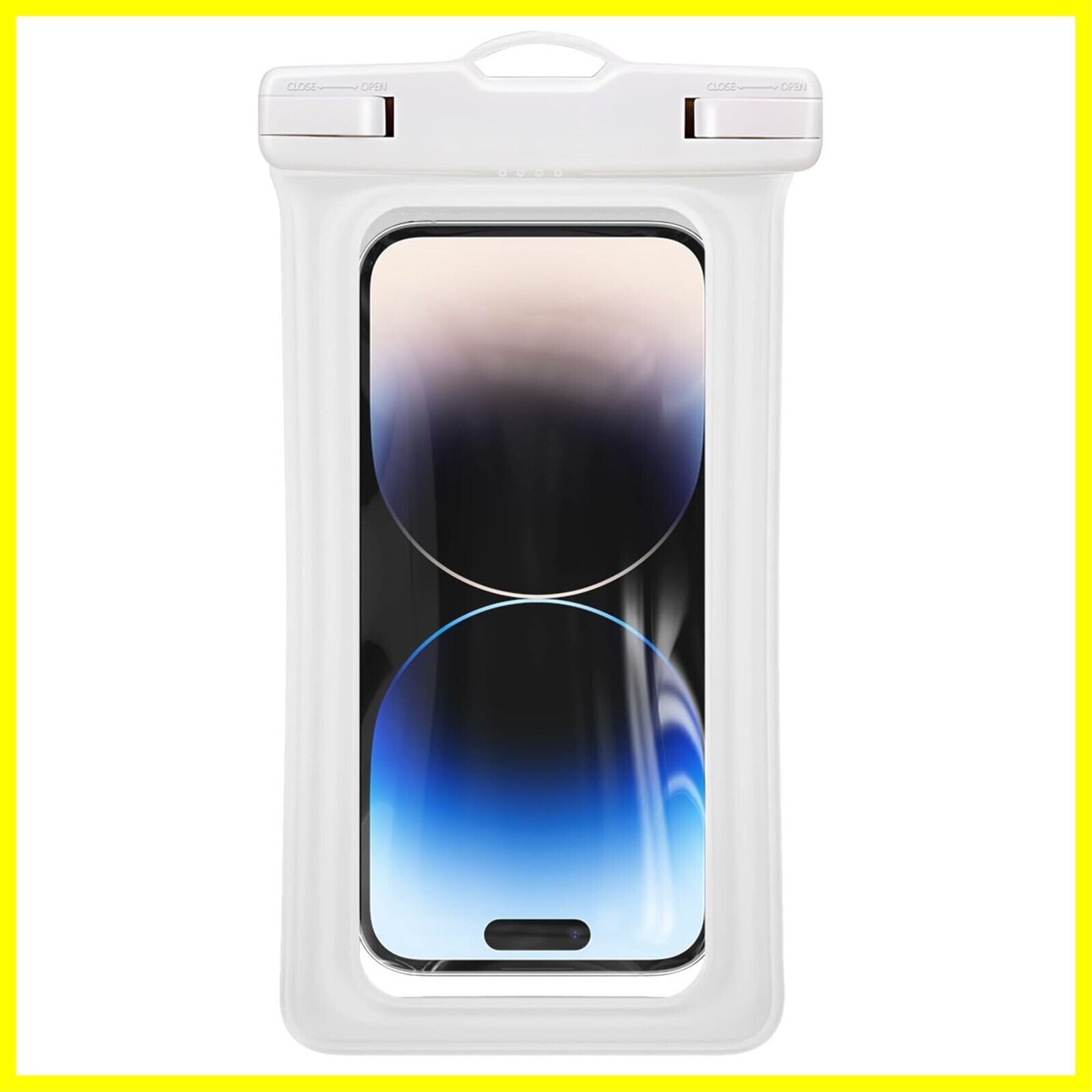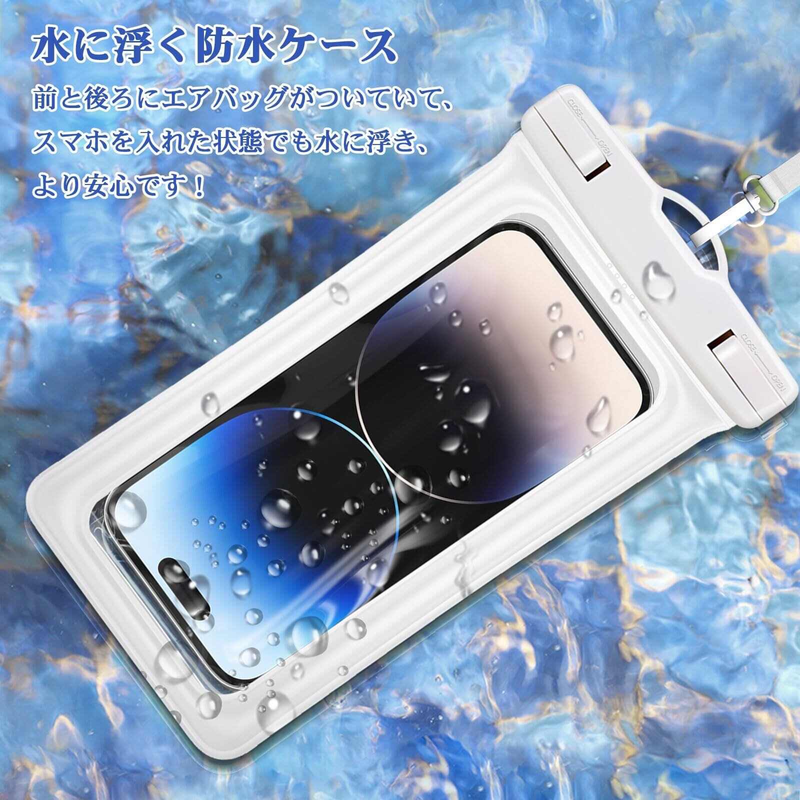 スマホ 防水ケース 海 【水に浮くタイプ/指紋/Face ID認証】スマホケース IPX8 水中・水上で操作できる 良いタッチ感度 顔認証 ロックがしやすい サイドボタンが押しやすい ストラップ付き 首掛け 高透過率 7インチ以下全機種対応 防水カバー 水中撮影 お風呂 釣り 海 海上アスレチックパークなど適用(水に浮くタイプ)ホワイト