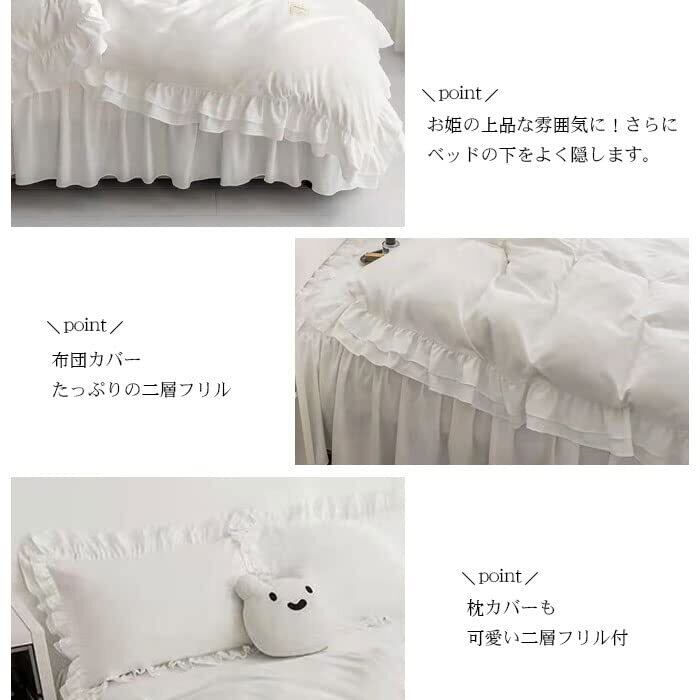 布団カバー フリル ベッドカバー 可愛い 寝具カバー 洗える 掛け布団カバー ボックスシーツ 枕カバー かわいい 布団かばー アイボリー 洋式・和式兼用 ふとんかばー ふとんカバー しんぐる (ブルー, セミダブル・4点セット)