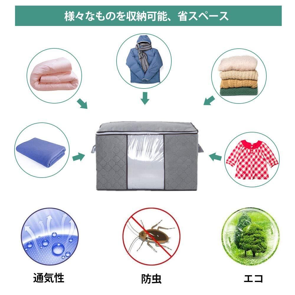 LATTCURE 布団収納袋 収納ケース 3個セット ふとん収納 不織布 大容量 布団収納バッグ 引越しバッグ 折り畳み式 60×42×36cm 透明窓 省スペース 衣類収納 洋服収納 引っ越し 押し入れ 防塵/防湿/防カビ/防虫