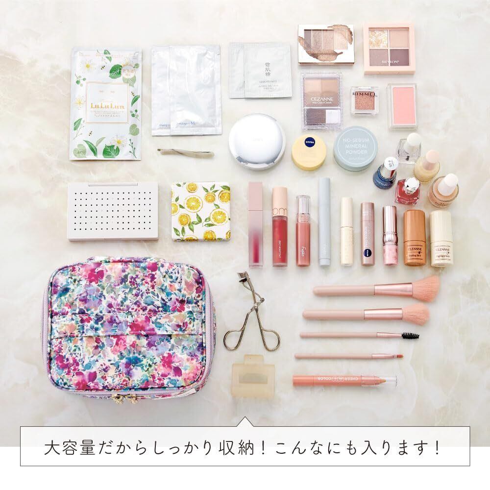 【色々なシーンで使える】フラットタイプの持ち手なのでバッグやスーツケース、キャリーケースの中でもかさばりません。出張や旅行、温泉やジム、イベントの遠征などでのトラベルポーチとして活躍します。家での毎日のお化粧タイムのコスメ収納としても圧迫感が無くて気分の上がる花柄はインテリアに馴染んでおすすめです。他にも文房具やペン類などのステーショナリーやバッテリー充電器、コード類などのガジェット類の収納、裁縫箱やアクセサリー収納、救急箱など小物入れとして多種多様な使い方が出来ます。