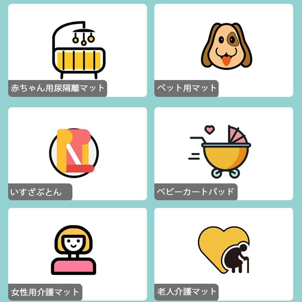 広い適用範囲:ベビーベッドやベビーカーの上に置いて赤ちゃんの尿隔離マットとして使用するのに最適で、そのほか、女性の生理中のケアマット、老人ケアマット、ペットのケアマットとしても使用できます。