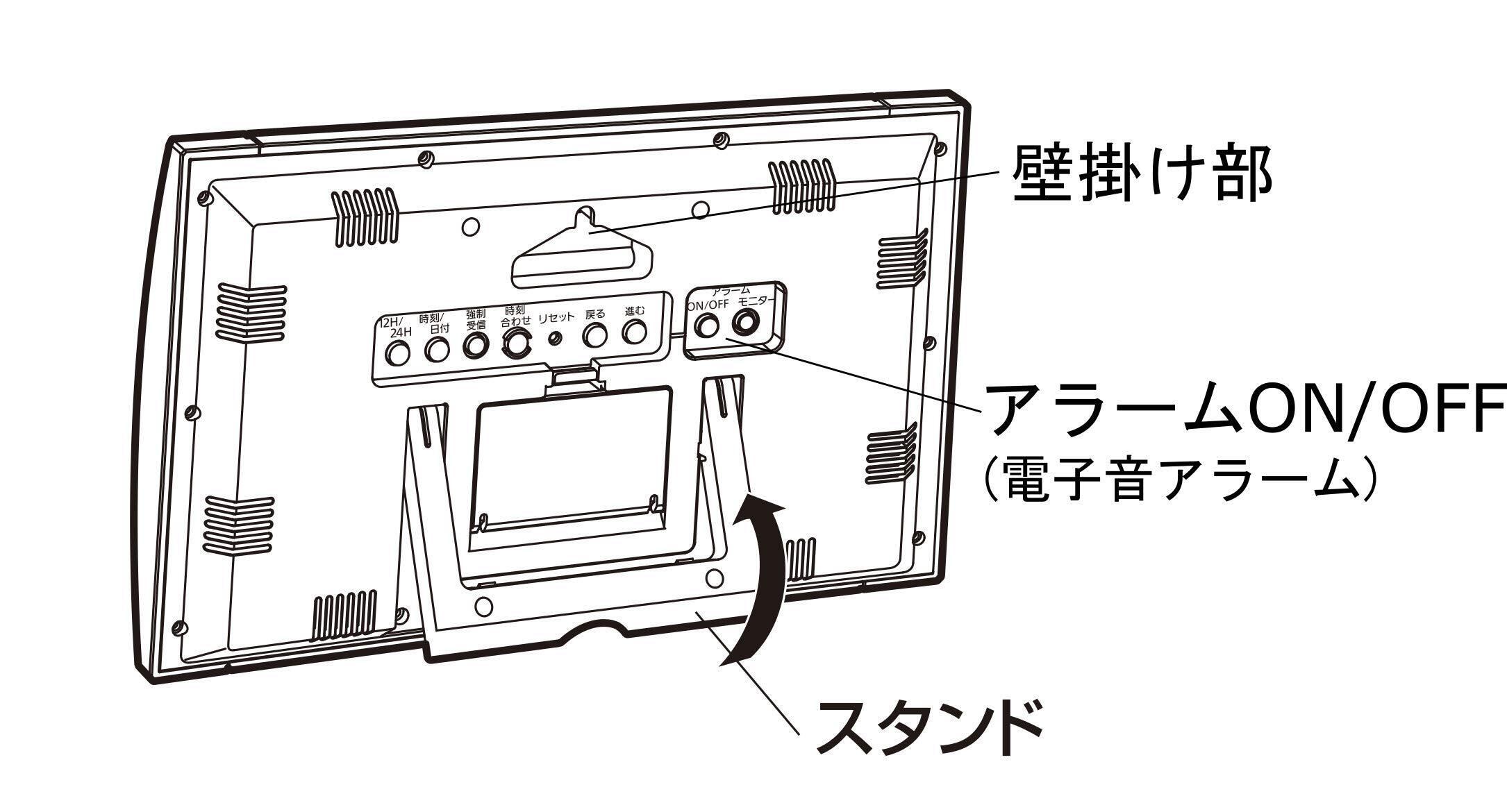 大きく見やすい画面が特長の掛け置き兼用の電波デジタル時計です。