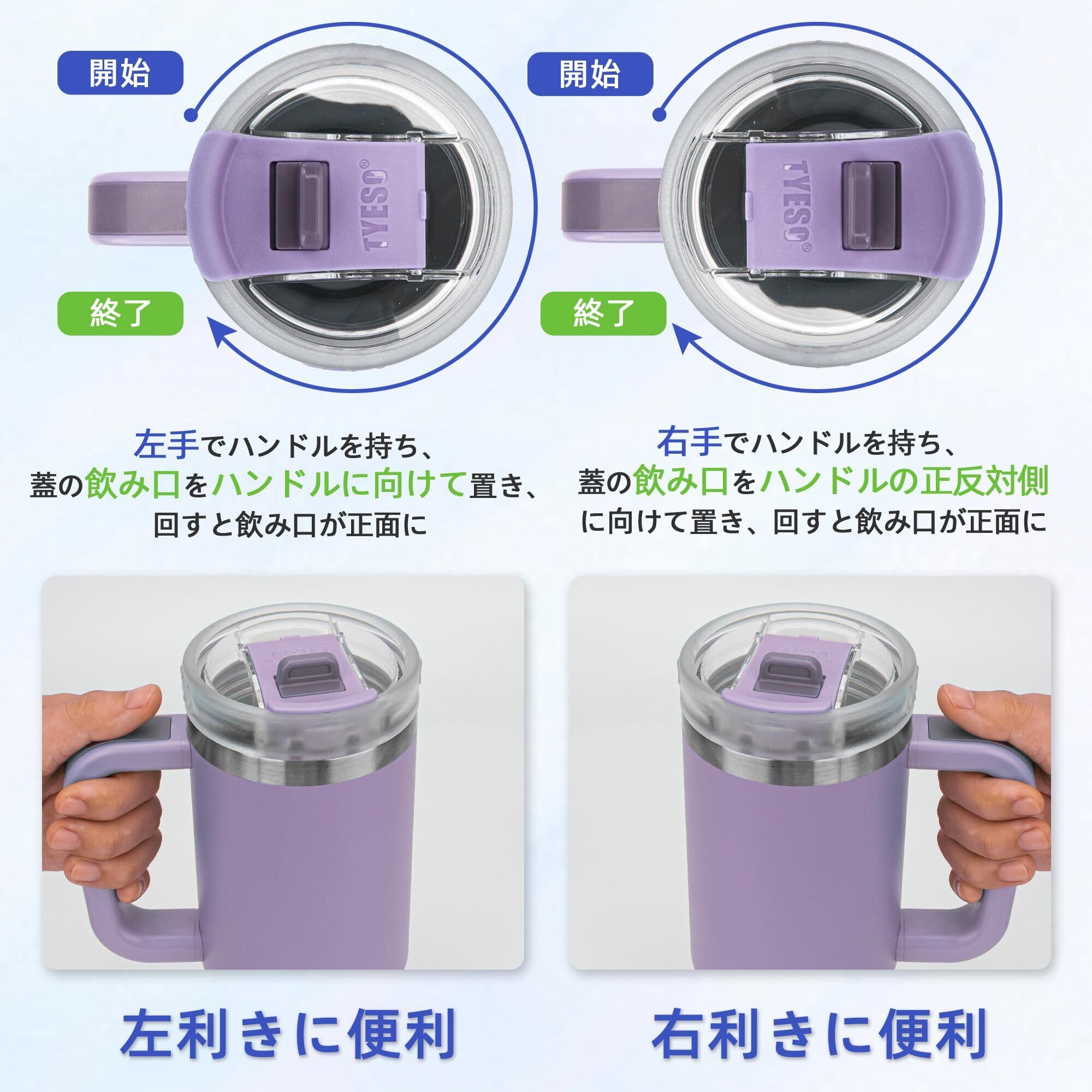 TYESO タンブラー 0.9L 水筒 保冷 ステンレスボトル ウォーターボトル ストロー 取っ手付き ジョッキ アウトドア 真空断熱 二重構造 広口 大容量 直飲 女の子 男の子 900ml パープル