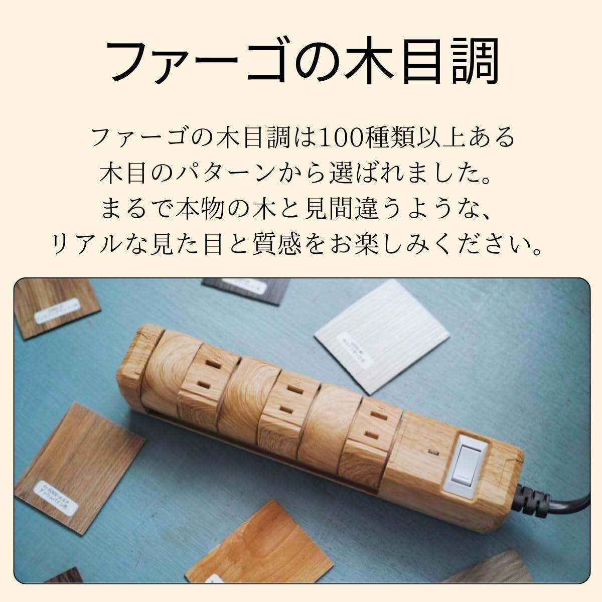 Fargo TAPKING 電源タップ USB 3.4A Type-A 2ポート クルッと回転 (ベージュウッド, 3.4A-USB, AC12個口 1.8m)