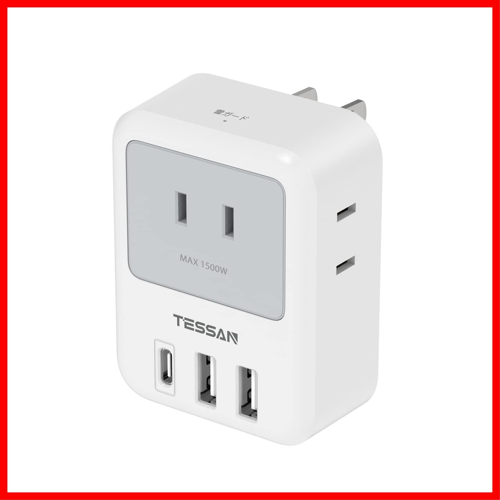 USB コンセント タップ TESSAN 電源タップ USB-C付き 3個AC口 2個Type-A 1個Type-Cポート たこあしコンセント タコ足配線 USB充電器 マルチタップ 雷ガード付 小型軽量 日本国内でのみ使用可能