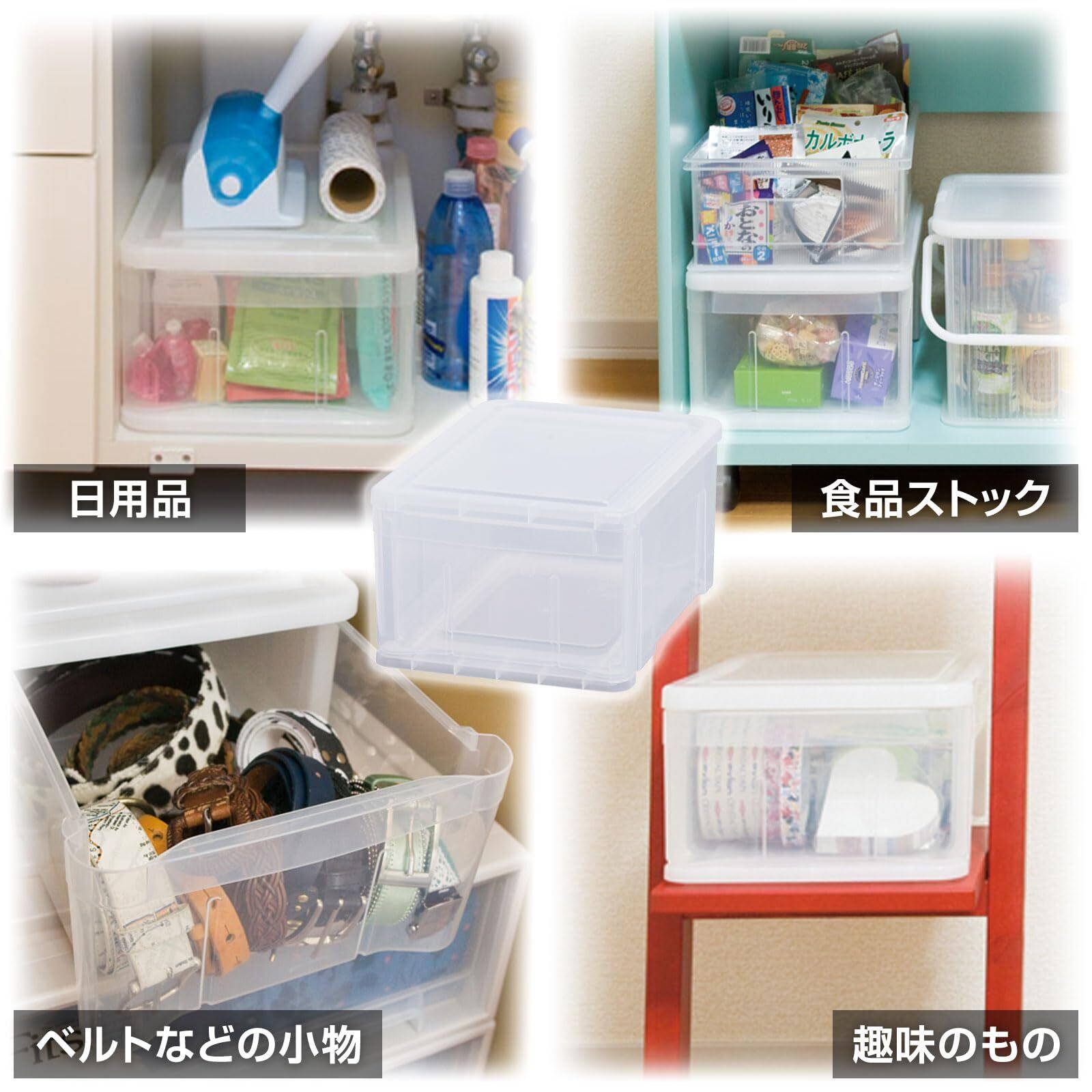 中身に何が入っているか一目で分かるシンプルな収納ケース。1個ずつ増やせて積み重ねらるので便利。引き出しは急な抜け落ちを防ぐ引き出しストッパー機能付きで安心してご使用いただけます。