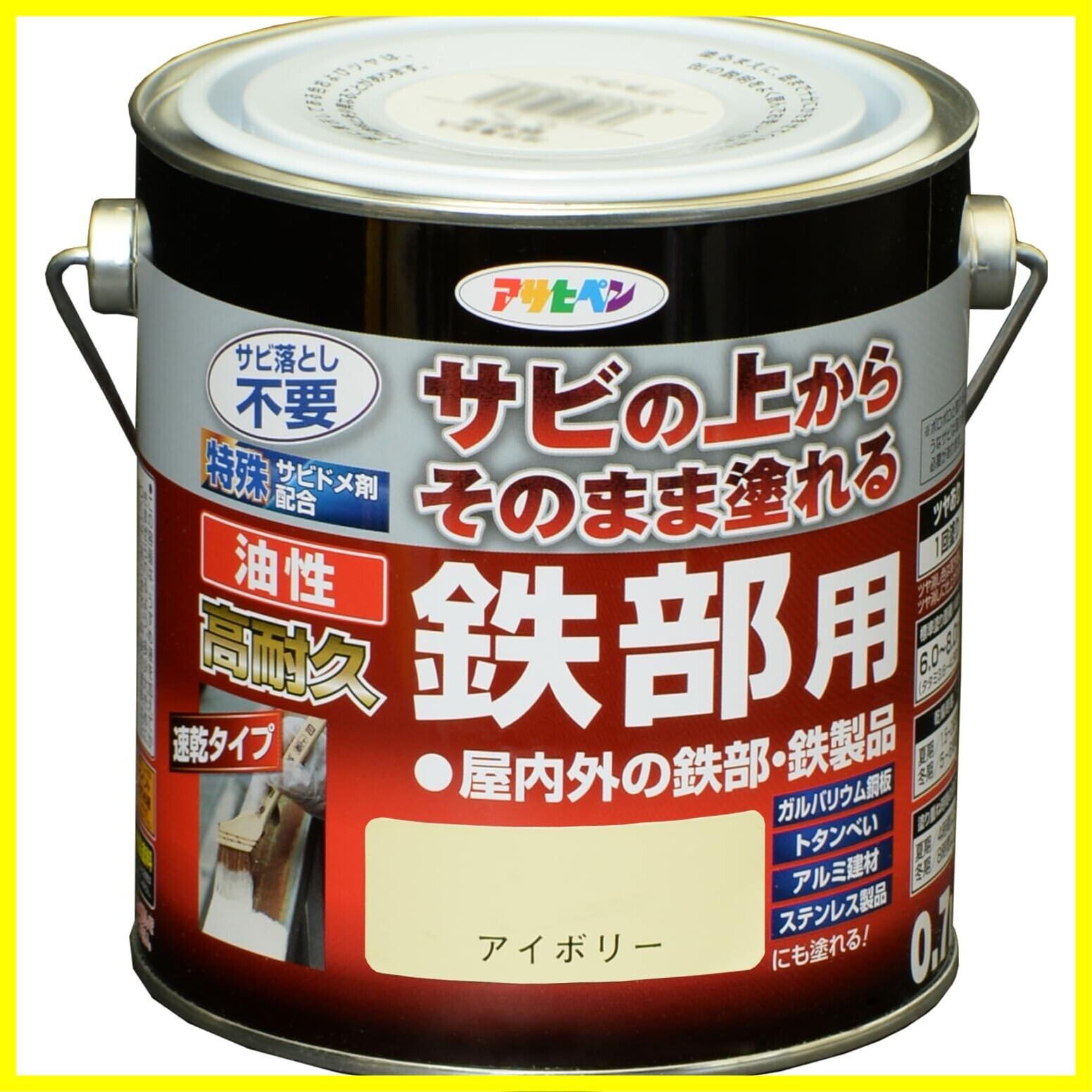アサヒペン 塗料 ペンキ 油性高耐久鉄部用 0.7L アイボリー 油性 サビの上からそのまま塗れる ツヤあり 1回塗り 高密着性 耐候性 日本製
