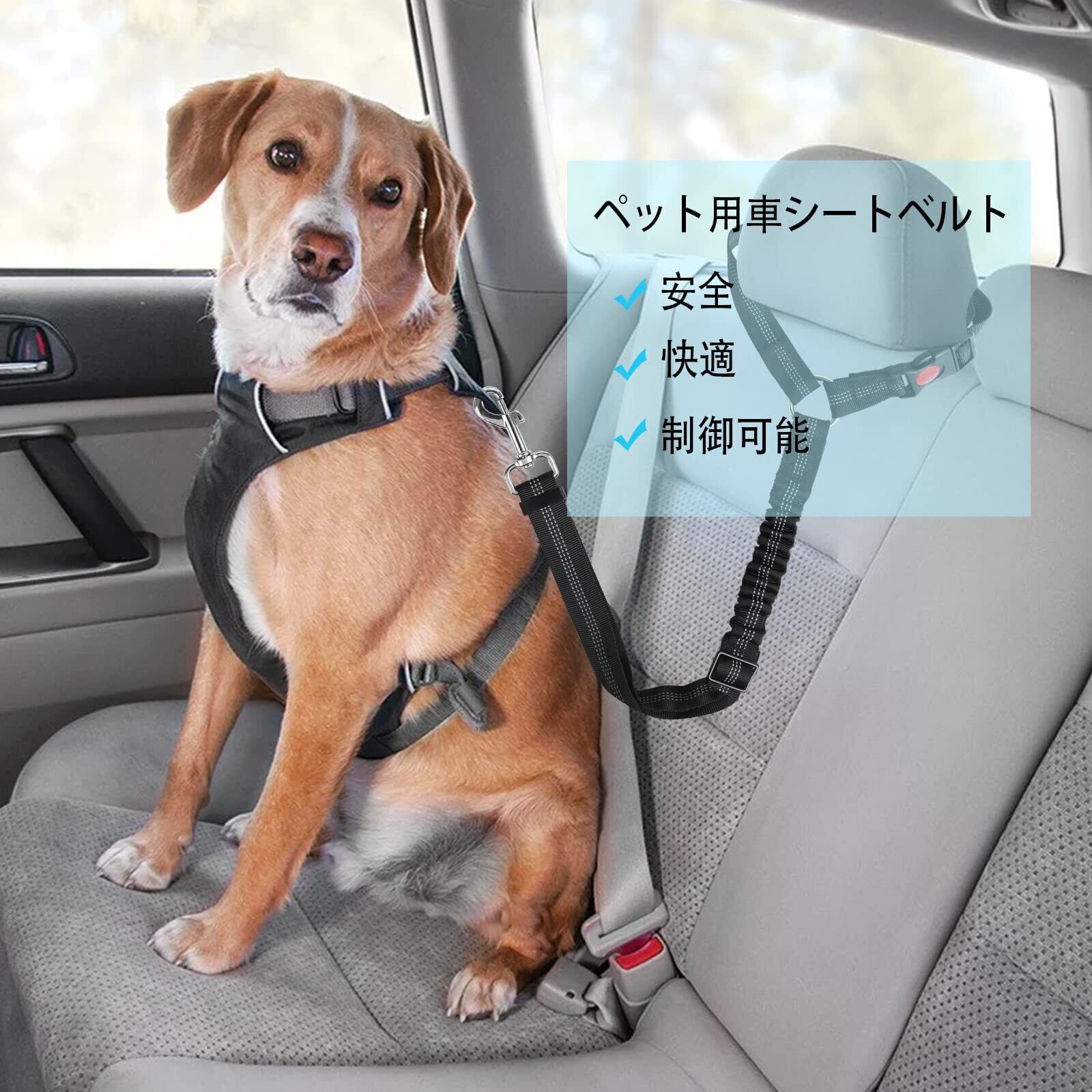 FINGOOO 犬 シートベルト 車専用リード 安全ベルト ペット 猫 犬用 長さ調整可能な100センチ 伸縮 簡単装着 (1本セット)