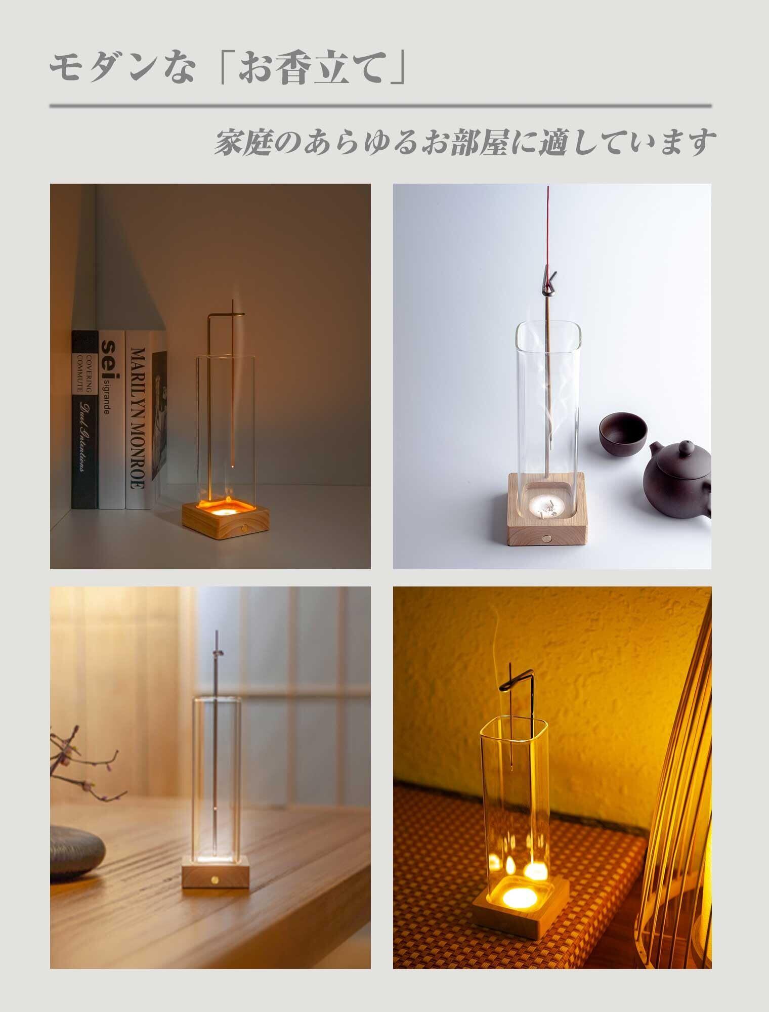 【灰が散らばらない】このお香立ては、通常のものよりも高いガラスカップが付属しており、お香が最後まで燃焼しても灰が外に落ちることはありません。より快適で安心した香道体験を提供します。
