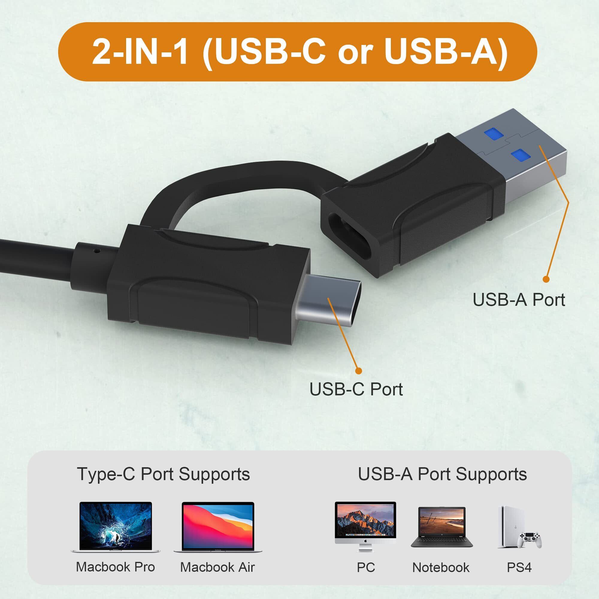 【5Gbps超高速転送】USB CとUSB 3.0ポートは、USB-AまたはUSB-Cスロット経由でノートパソコン、タブレット、携帯電話へのアクセスをより効率的に行うために設計されています。 プラグアンドプレイで簡単に操作でき、追加ドライバーは不要です。 最大5Gbpsの転送速度で、従来のUSB 2.0プロトコルの10倍の速度で、共有をスピードアップし、いつでも共有できるようにします。