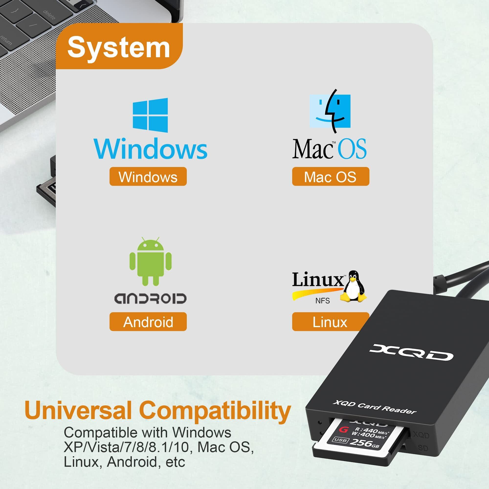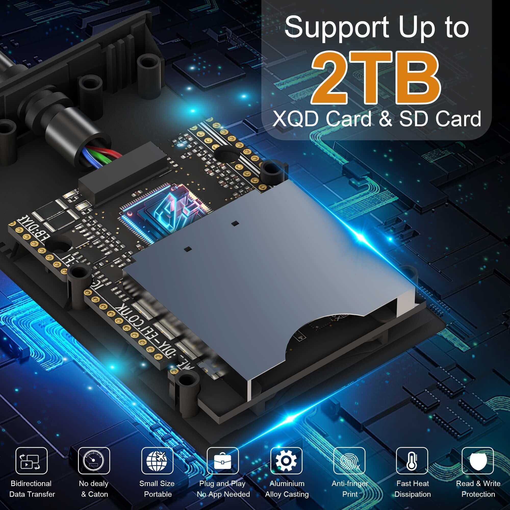 【xqd カードリーダー 幅広い互換性】XQDカードを搭載したNikon D4/D5/D500カメラなどのプロフェッショナルデバイスに最適、XQDカードスロットはXQD Sony GシリーズとMシリーズXQDカード、Lexar 2933x、Lexar1400x USB Mark XQDカード、SD /SDHC/SDXC series.XQD および最大容量2TBのSDカード用のSSDカードスロットと完璧です。 Windows/Mac OS/Linux/Chrome系、USB Cインターフェイス搭載のスマートフォンに対応しています。 注:Sony N、S、HシリーズXQDカードはサポートされていません。