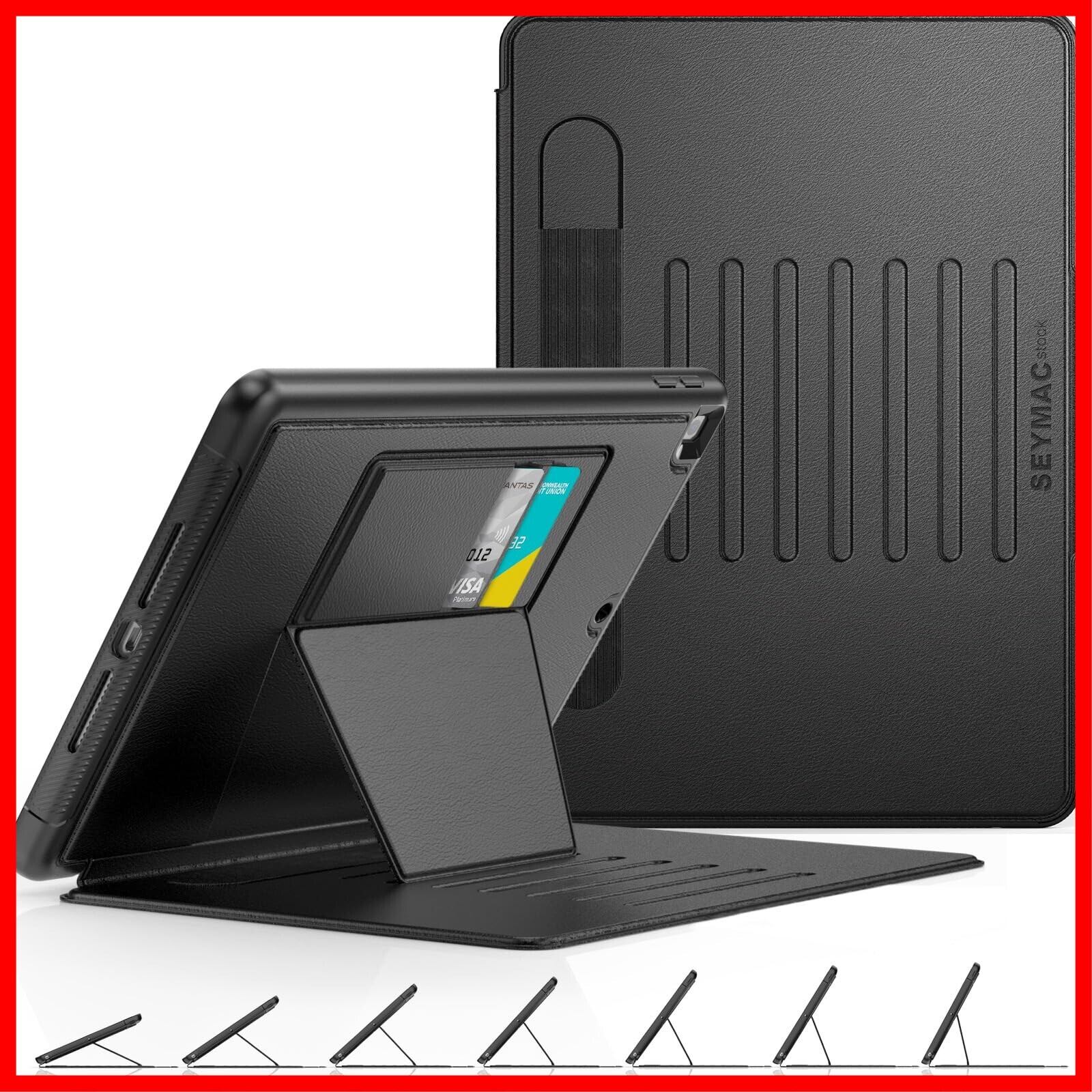 SEYMAC stock ケース iPad 9/8/7世代(2021/2020/2019) 10.2インチ ケース 耐衝撃 多角度横置き調節 オートスリープ ペン収納 カード収納 強磁力全面保護カバー(ブラック)(適格請求書発行事業者)