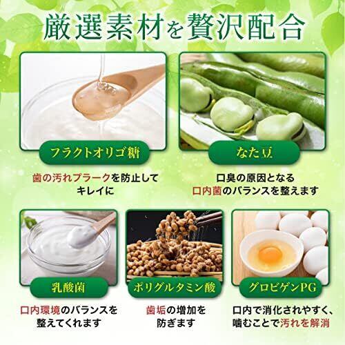 還元麦芽糖水飴、デキストリン、フラクトオリゴ糖、ナタマメ茶末、リベチン含有脱脂卵黄粉末、オリゴ糖、殺菌ビフィズス菌/セルロース、ポリグルタミン酸、ステアリン酸カルシウム
