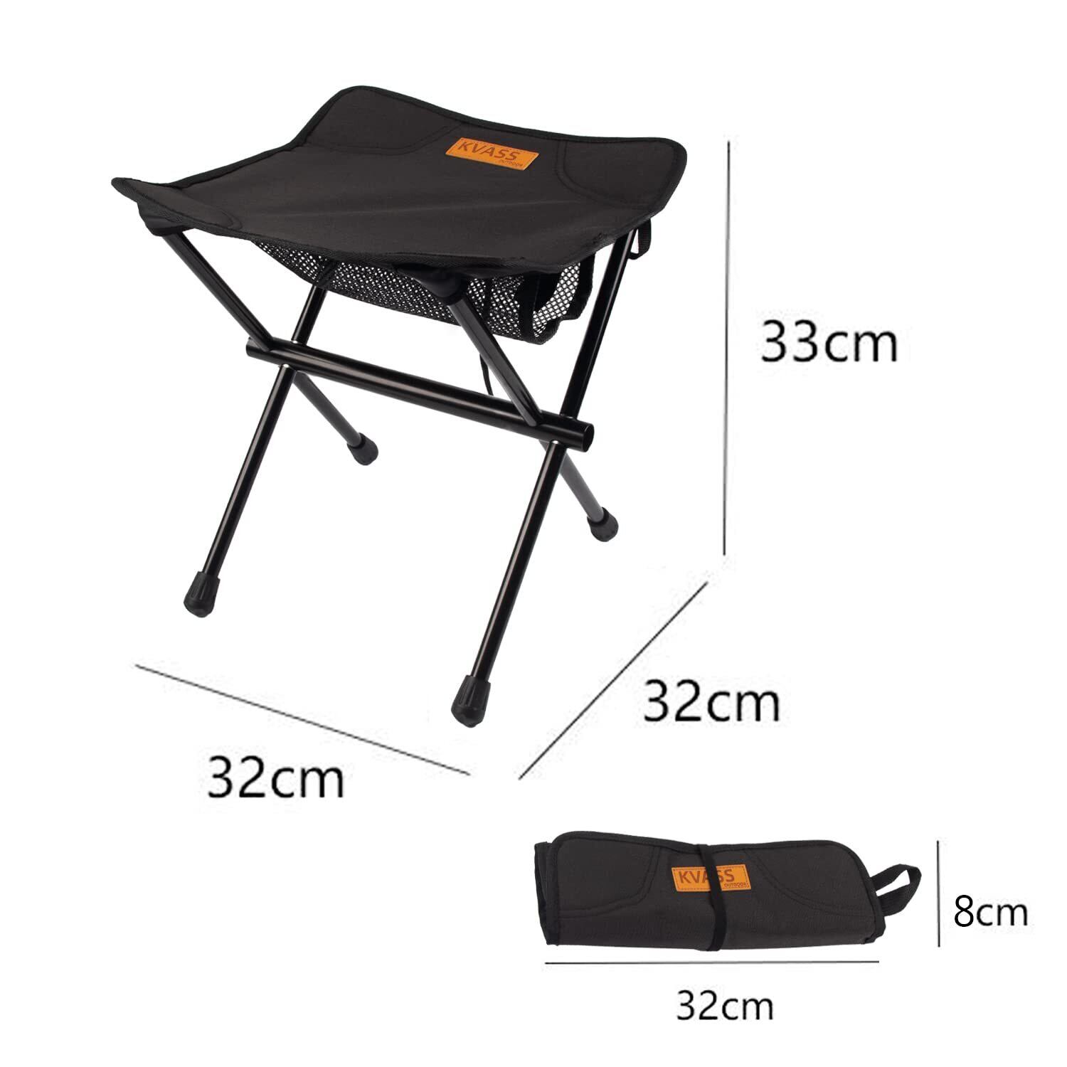 KVASS アウトドアチェア 折りたたみ椅子 コンパクト 持ち運び 折り畳み 椅子 チェア アルミ 超軽量 耐荷重100㎏ 一体型収納袋 収納簡単 小さい イス ミニチェア 登山 釣り キャンプ レジャー 運動会 (Black, 1)