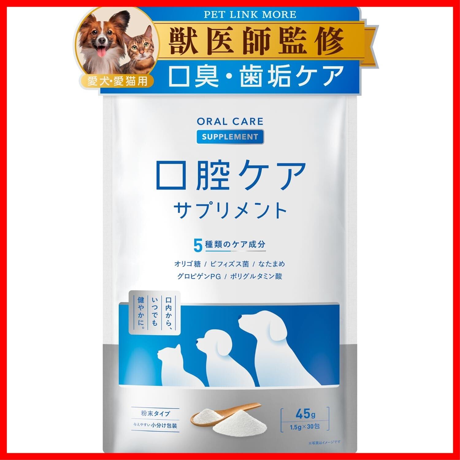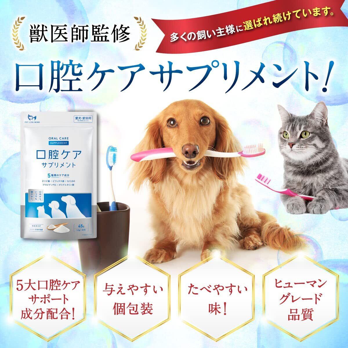 PETLINKMORE 犬猫用 ふりかけ 口腔ケアサプリ 歯磨き 歯磨き粉 口臭 口内ケア 歯石 デンタルケア 国内製造 1.5g×30包 (30日分) (単品)