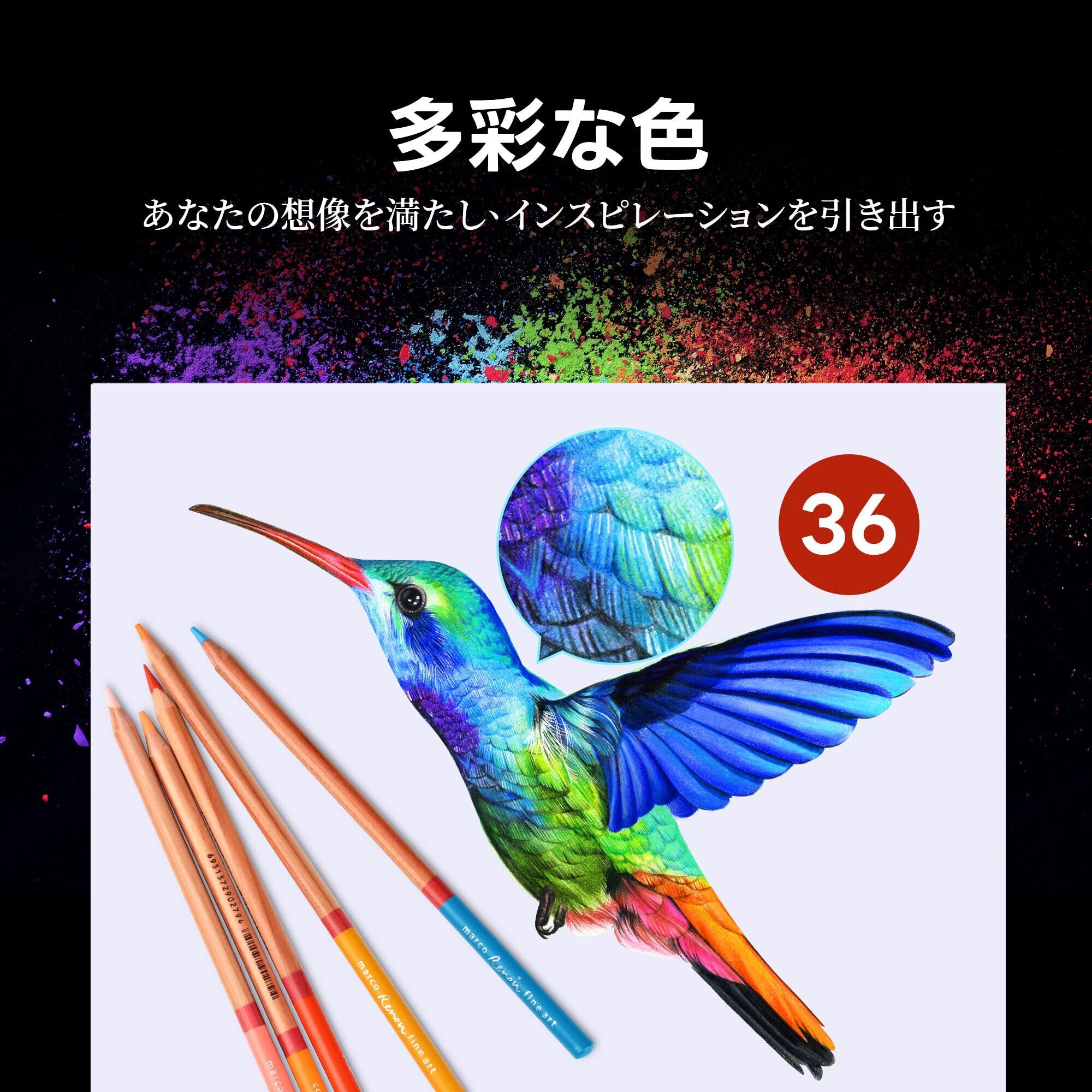 Marco色鉛筆 36色 油性 発色の良い 色えんぴつ プロ 3.7 mm粗芯 折れにくい 大面積敷き色ふっくら重ね塗り可能 着色しやすい 子供 大人 学生 専門美術従事者向け 鉄箱入 高級プレゼント,3100-36色