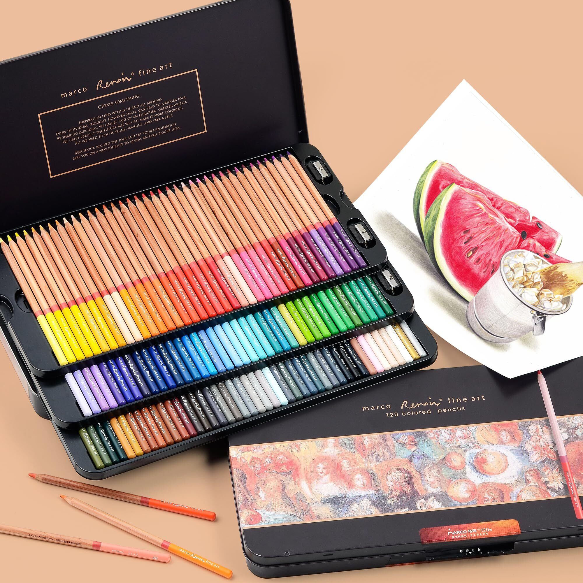 【色が豊富で表現効果が高い】この色鉛筆セットは、Marco Renoir 3100高級美術油性色鉛筆で、色が鮮やかで豊満で、手触りが油もちで滑らかである。