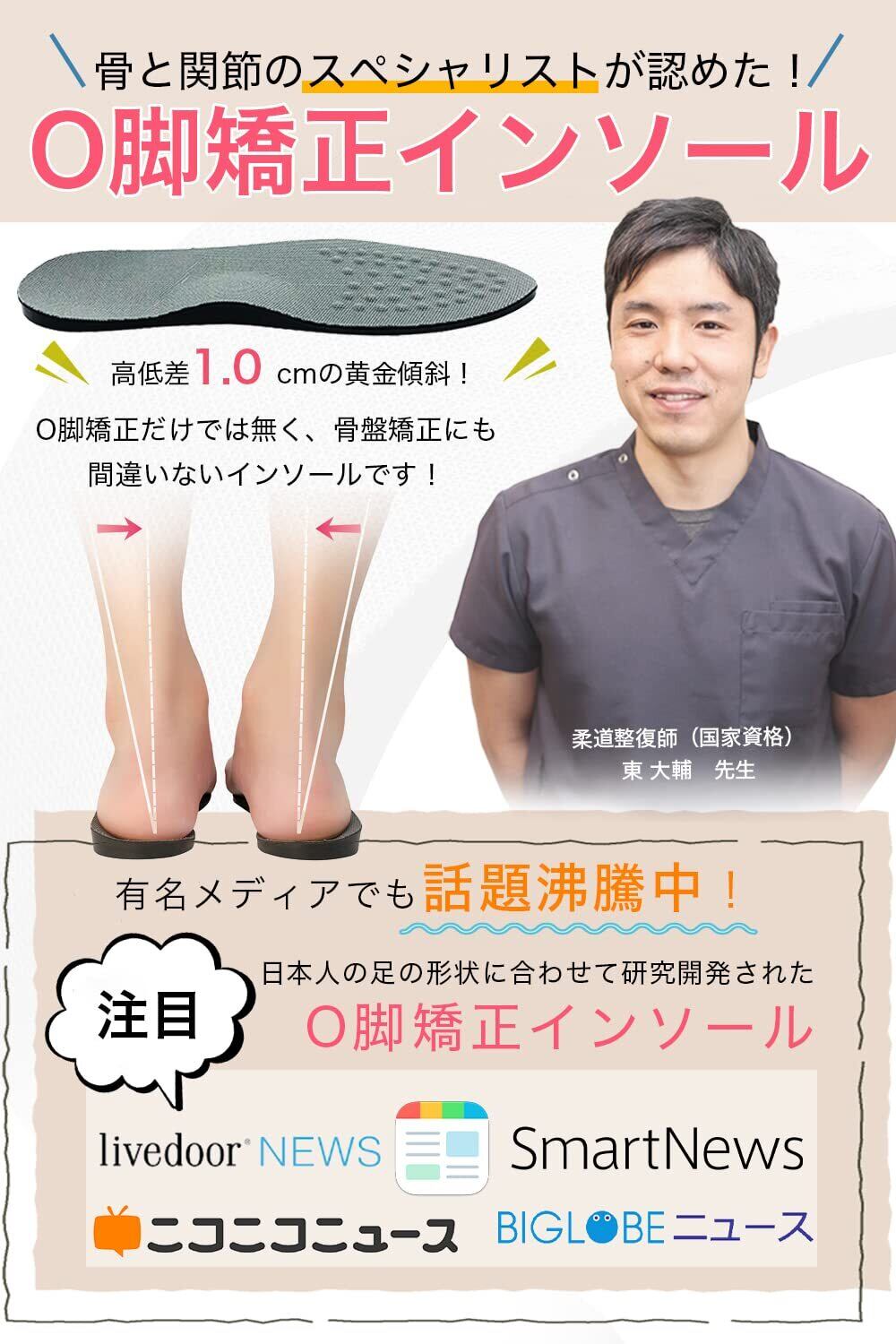 【専門家のお墨付き】骨と関節のスペシャリスト、柔道整体師(国家資格)が監修し認めた逸品です!「O脚矯正だけでは無く、骨盤矯正にも間違いないインソール」と自信をもって勧めています。