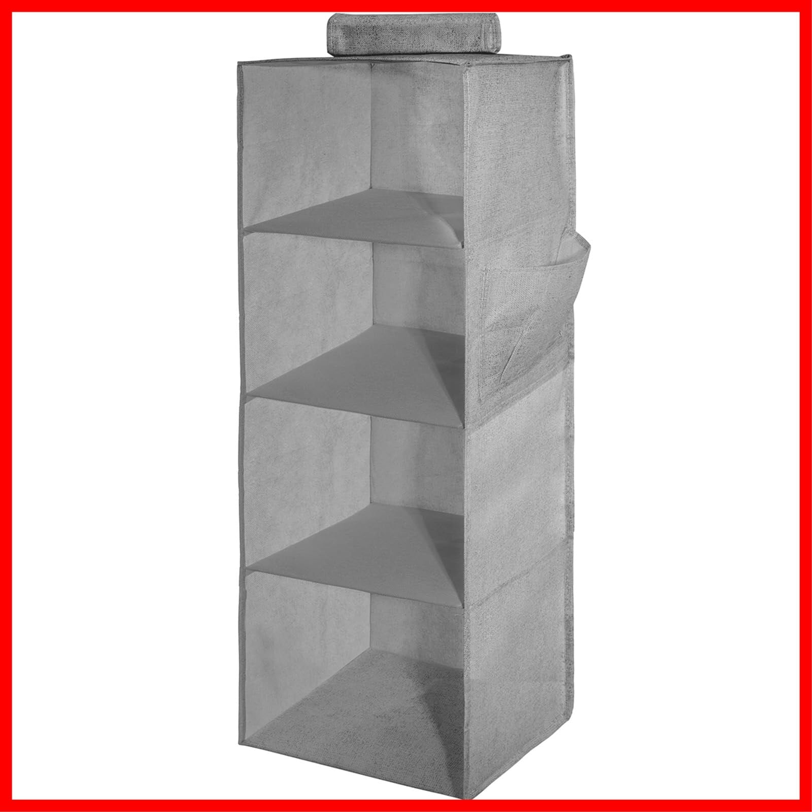 YRCBEHFU 吊り下げ収納 【最新強化版】 クローゼット 収納吊り下げ 4段 PPボード 大容量 衣類ラック 帽子/鞄 収納/旅行/出張 取付簡単 折り畳み式(グレー、27x27x80cm)