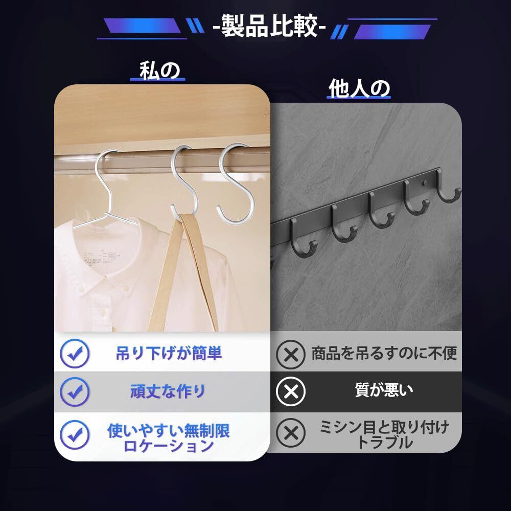 [S字フックの実用性] ネジや接着剤が不要で、S字フックを掛けるだけで簡単に収納・吊り下げができます。
