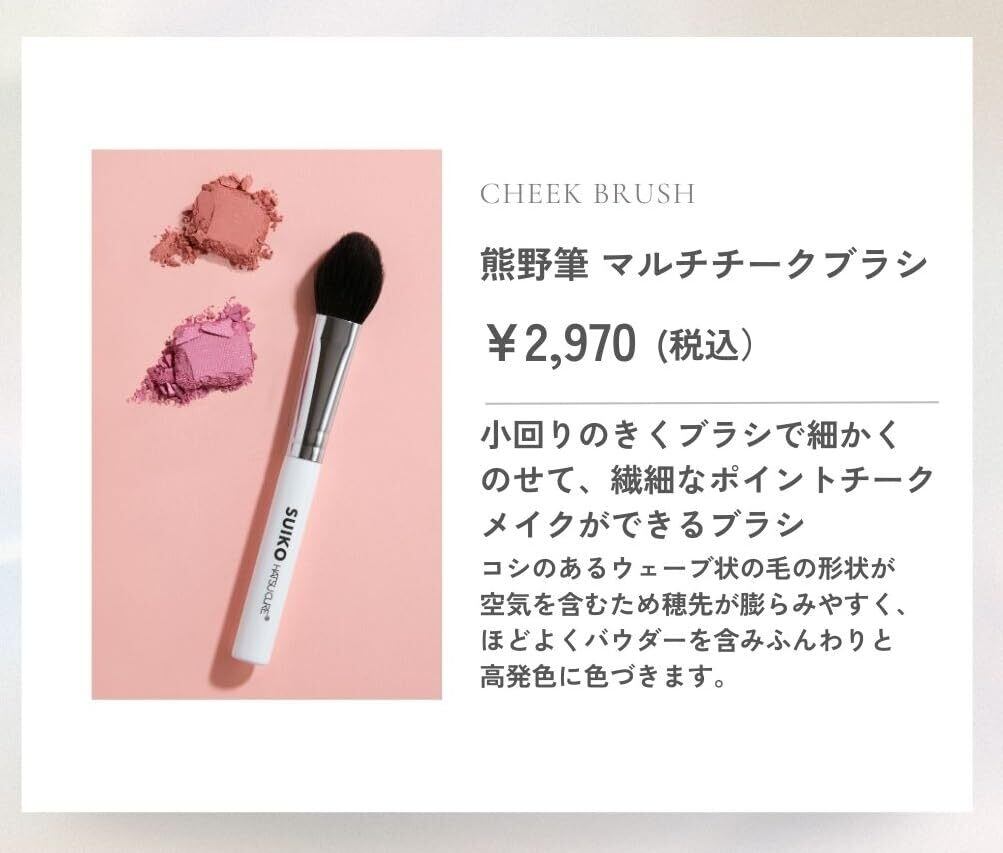 【POINT2】熊野の職人がてがけたこだわりのバランス ・日本のみならず、世界中から高く認知、支持されている熊野の熟練した職人が、毛質のバランス感にこだわりたどりついたブラシ ・絶妙なバランスで調整された小回りのきく毛の密度が高い形状で、SUIKOのマルチカラーともぴったりのサイズ感