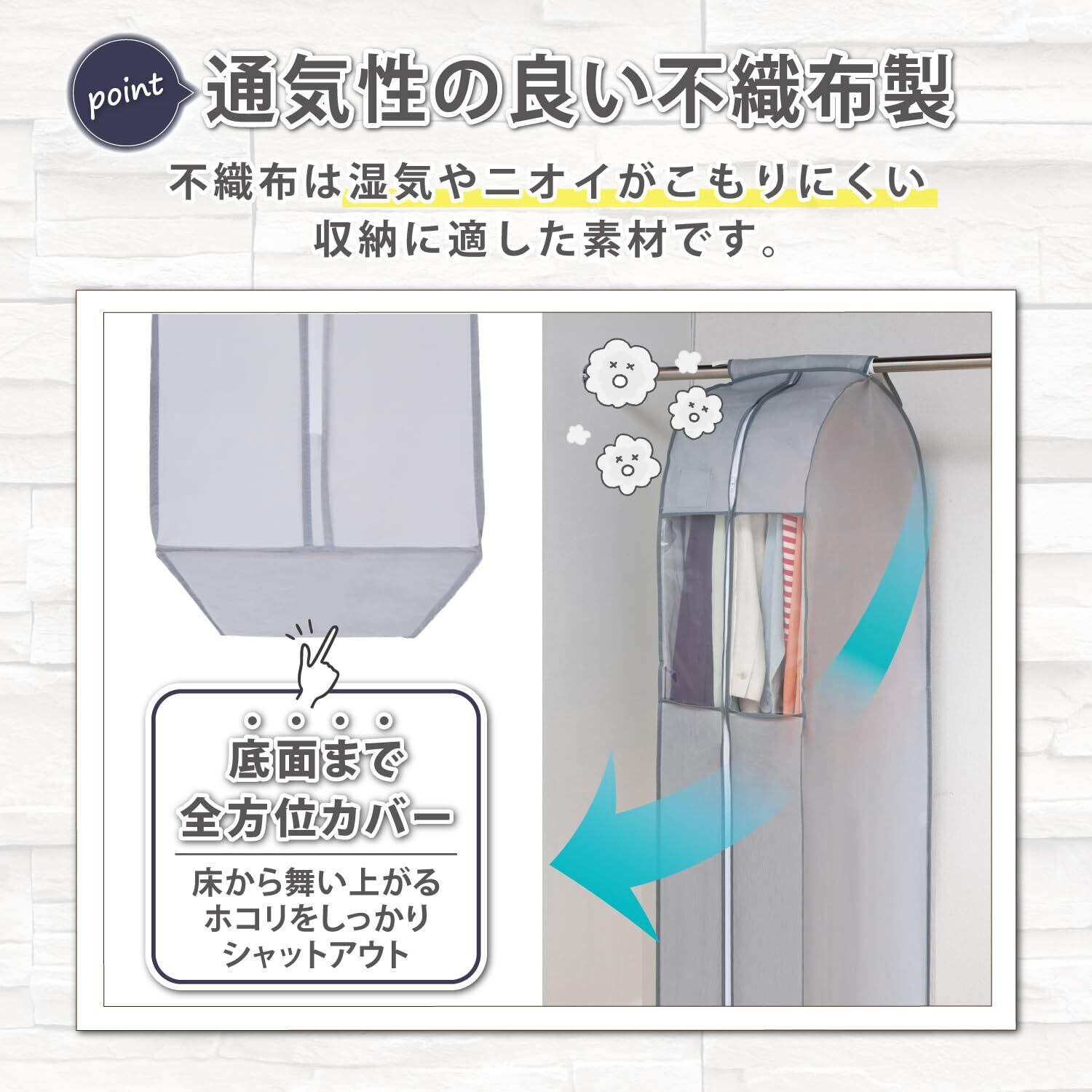 アストロ 衣類カバー グレー マチ付き ワイド ロングサイズ 2枚組 ジャケット ロングコート ワンピース ドレス 保管 洋服カバー 不織布 衣装カバー スーツカバー クローゼット 吊り下げ収納 透明窓 防虫剤ポケット付き 底閉じタイプ まとめて収納 167-08