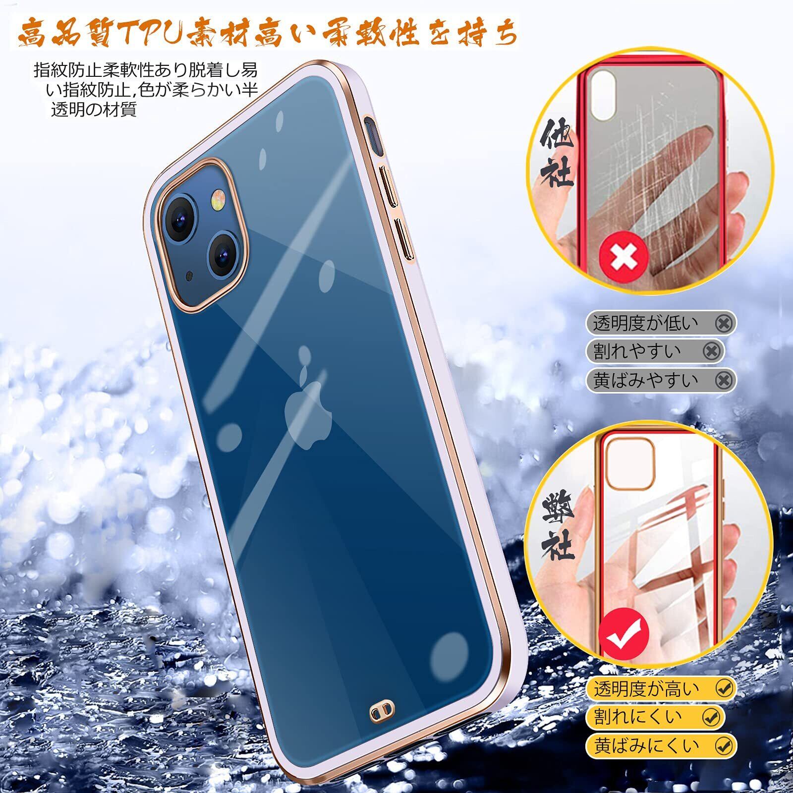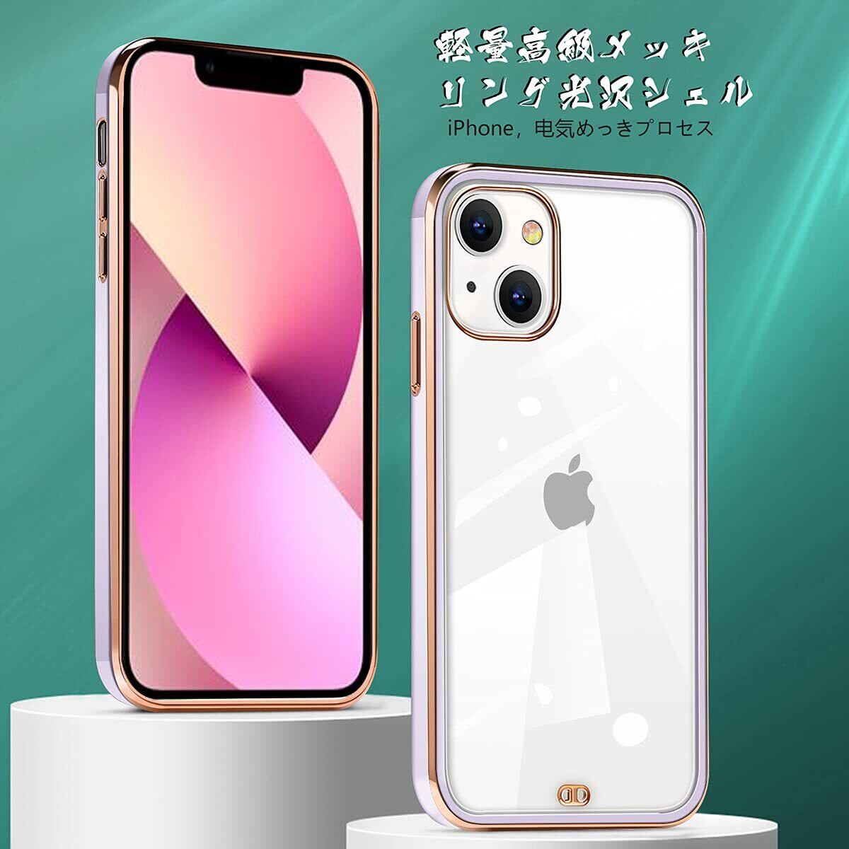 iPhone13 ケース クリア いphone13 スマホケース カバー 透明 可愛い かわいい 韓国 耐衝撃 薄型 人気 クリアケース メッキ加工 アイフォン13(クローブ 紫)