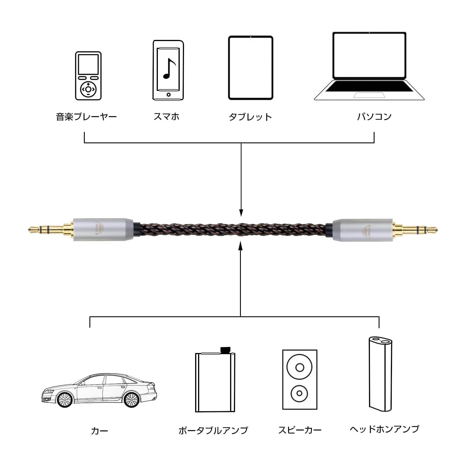 okcsc AU8 オーディオケーブル ステレオミニプラグ AUXケーブル 両側オスオス 3.5mm(オス)→3.5mm(オス) 8芯 OFC 金メッキ スマートフォン、アンプ、オーディオプレーヤー等に適用 約15cm