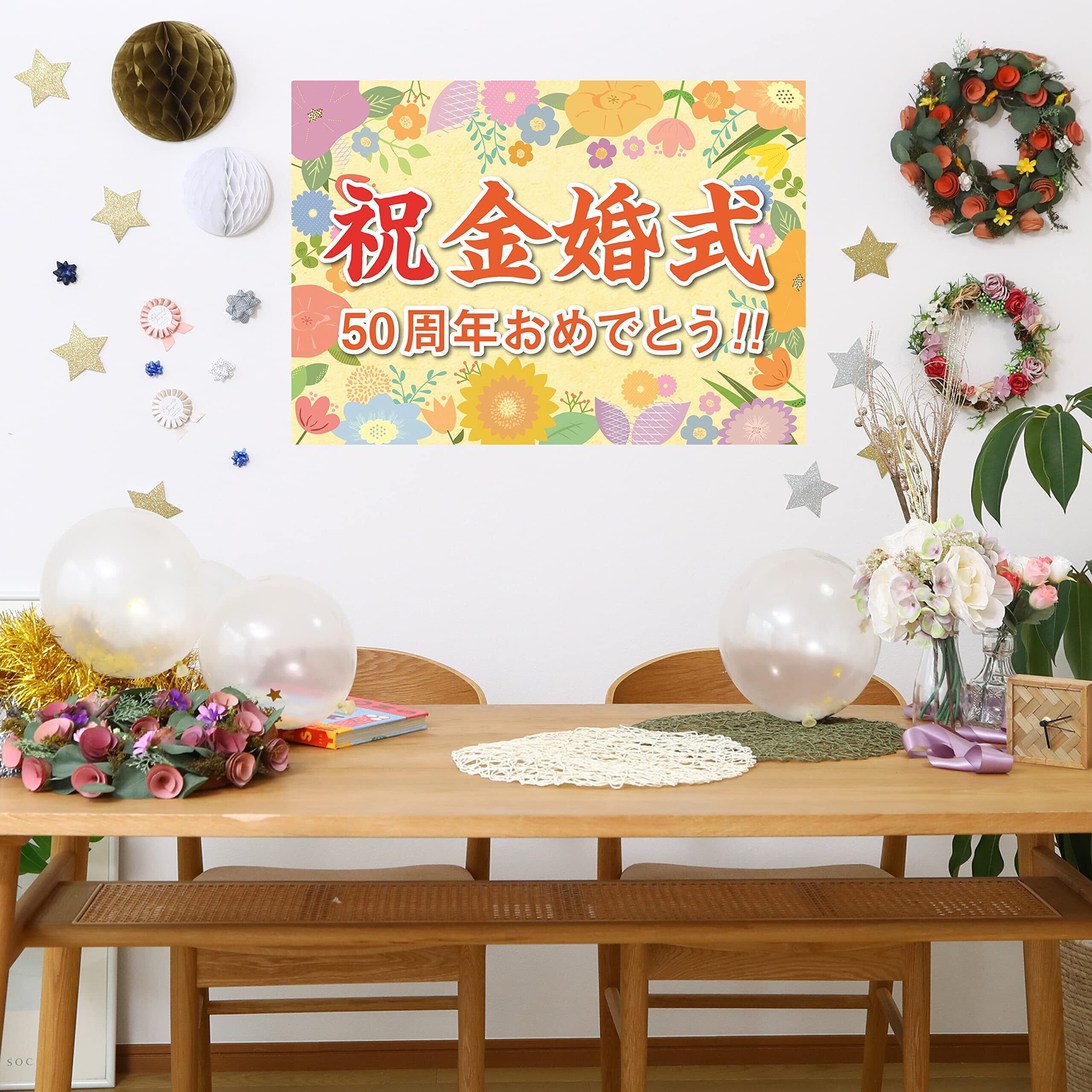 【利用シーン】大切な人(両親 お父さん お母さん おじいちゃん おばあちゃん 夫婦)の、金婚式のお祝いの飾り付け横断幕としてオススメです。