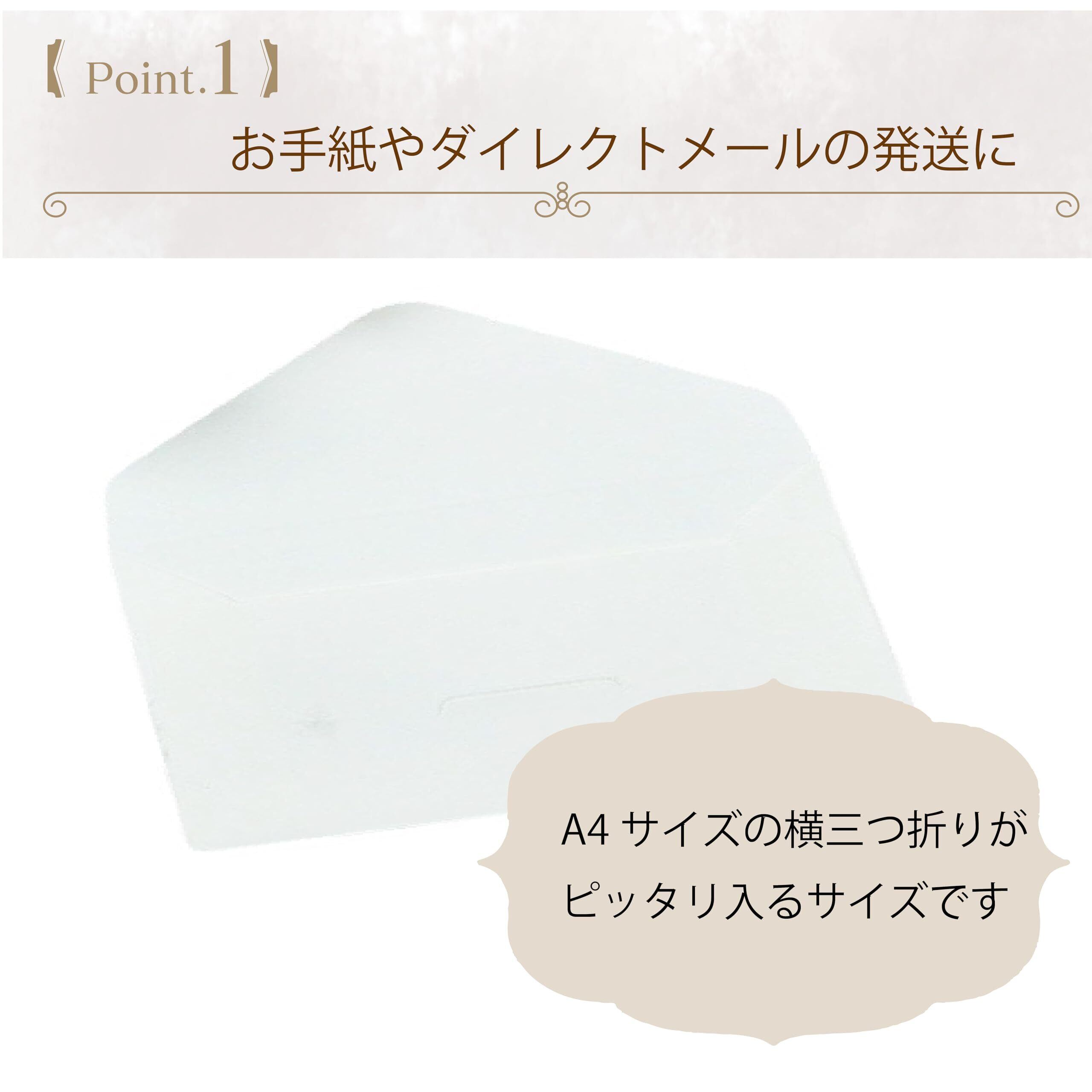 用途:オフィスでの書類発送への使用はもちろん、お手紙やダイレクトメール(DM)などにもお使いいただけます。A4三つ折りが入るサイズです。