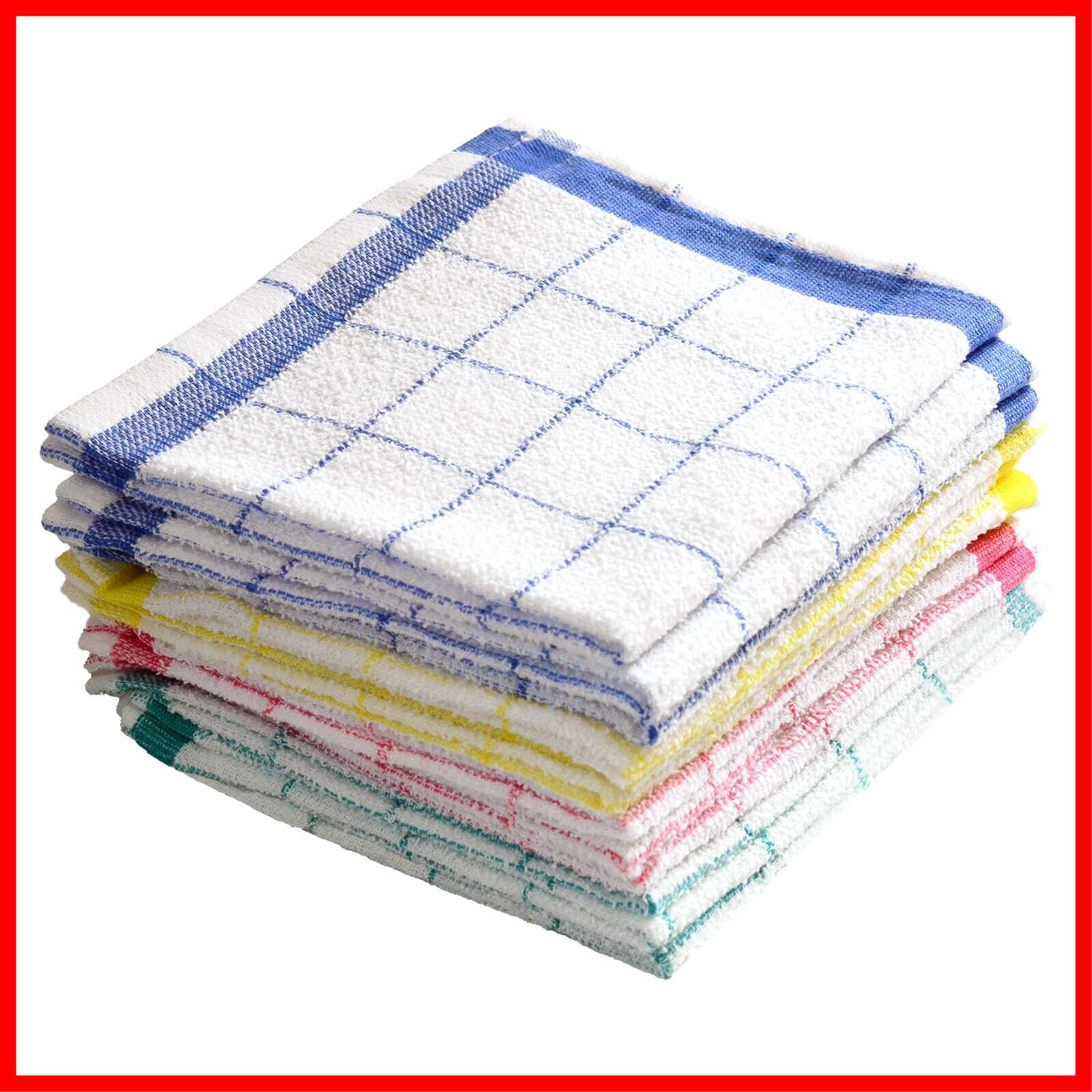 [19inch] キッチンタオル 24枚 格子ふきん おしぼり 手拭き 綿100% 業務用 薄手で絞りやすく乾きやすい 様々な用途で使える定番のサイズ 布巾 (ブルー ピンク イエロー グリーン, 24枚(4色 各6枚))