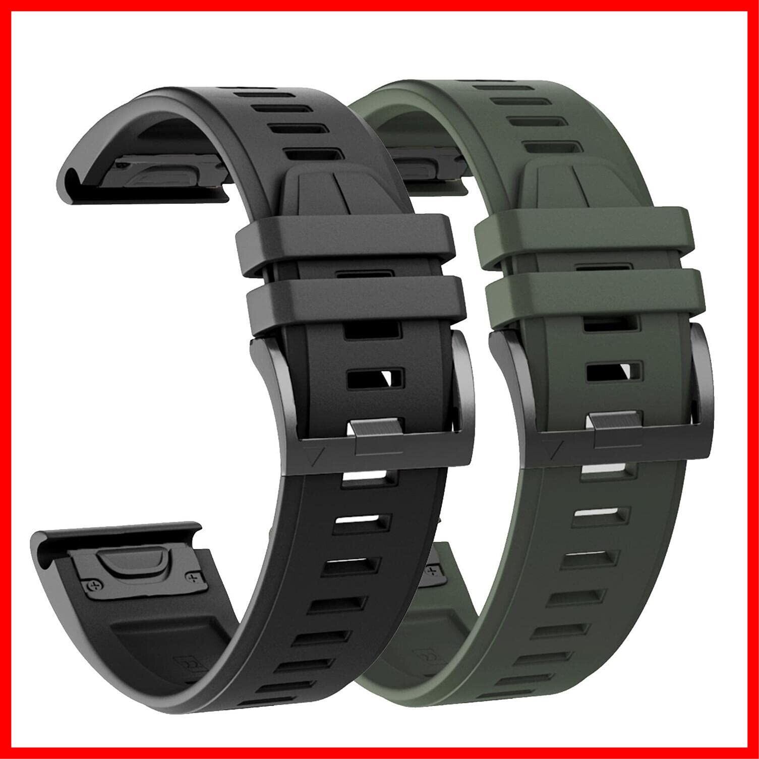 [Ahayo] QuickFit 22mm 2パック防水替えバンド に適合するガーミンFenix 8 47mm / epix Pro 47mm / Instinct 2 Solar, 留め金具の シリコン スポーツ ベルト用のGarmin Fenix 7/Fenix 6/ Approach S62 /S70 47mm (黒と緑)