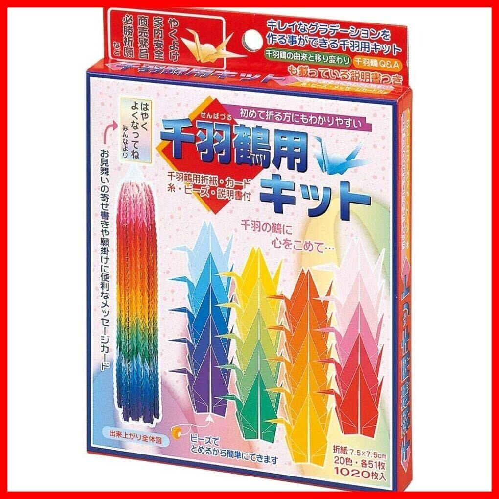 トーヨー 折り紙 千羽鶴用キット 7.5cm角 20色 1020枚入 103400