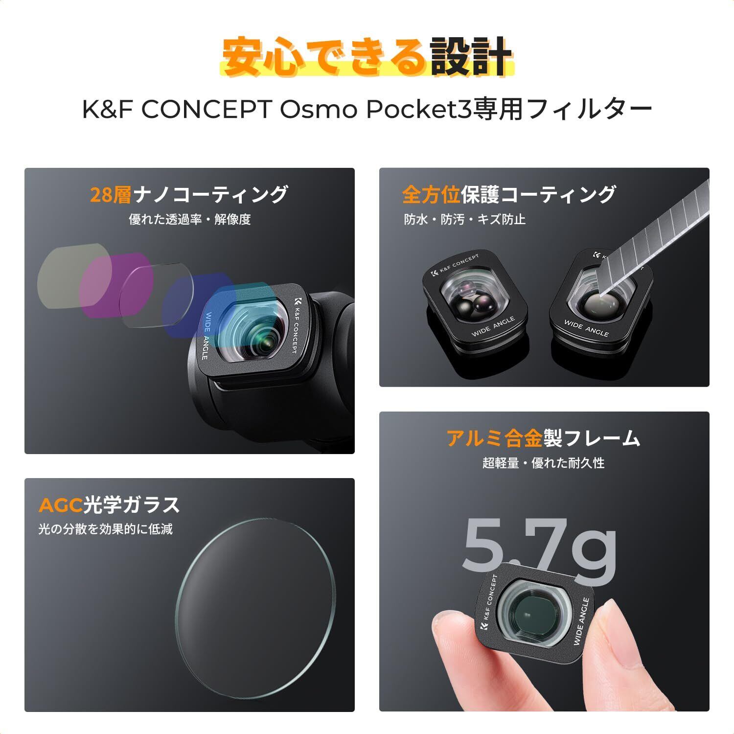 K&F Concept DJI OSMO Pocket 3用磁気式フィルター 広角レンズ 広角120°撮影範囲 倍率0.72X 広角フィルター 磁気吸着 装着便利 AGC光学ガラス 28層ナノコーティング 防水防汚