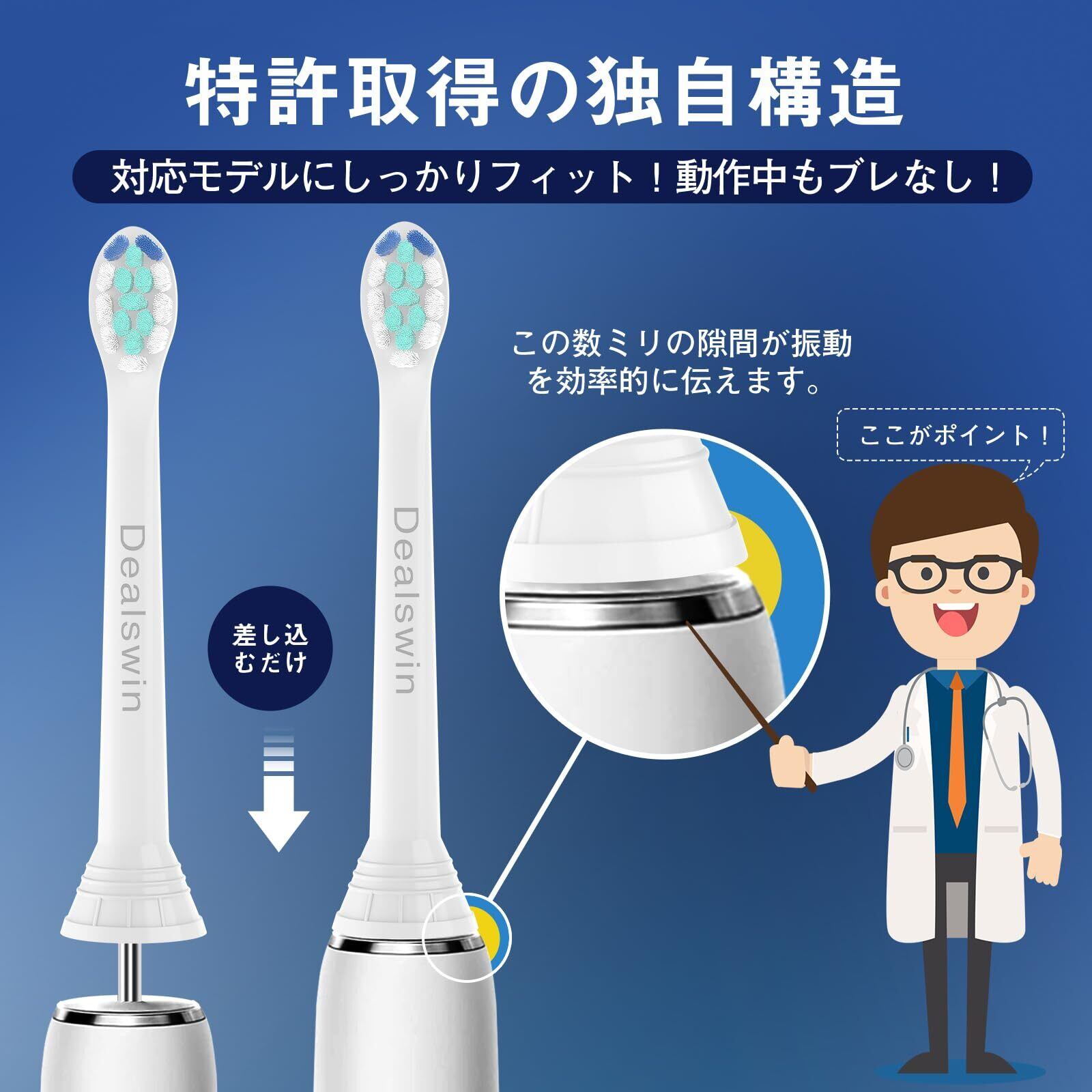 【完全互換】Dealswinのソニックケア 用の 替えブラシは、フィリップスソニッケアーのダイヤモンドクリーン、プロテクトクリーン、エキスパートクリーン、イージークリーン、ハイドロクリーン、ヘルシーホワイト、フレックスケア、ガムヘルス、プラークコントロール、クリーンケア、プレミアムクリープレックスケアプラスなど、全ての対応機種で使用可能です。※eシリーズおよびPhilips Oneシリーズには対応していません。型番に不明点があれば、お気軽にお問い合わせください。