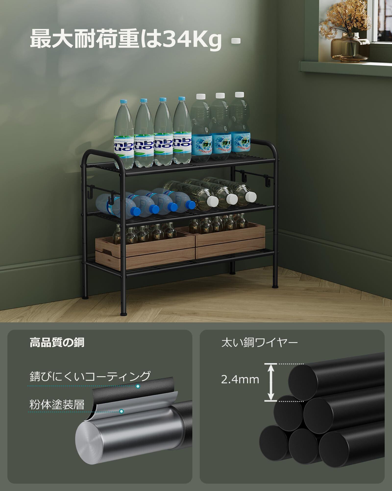 【靴の簡単な収納】 この調整可能なメタルシェルフの各層は、快適に3〜4足の靴を収納するのに十分な広さがあります。お気に入りの靴に簡単にアクセスし、きちんと収納出来ます!