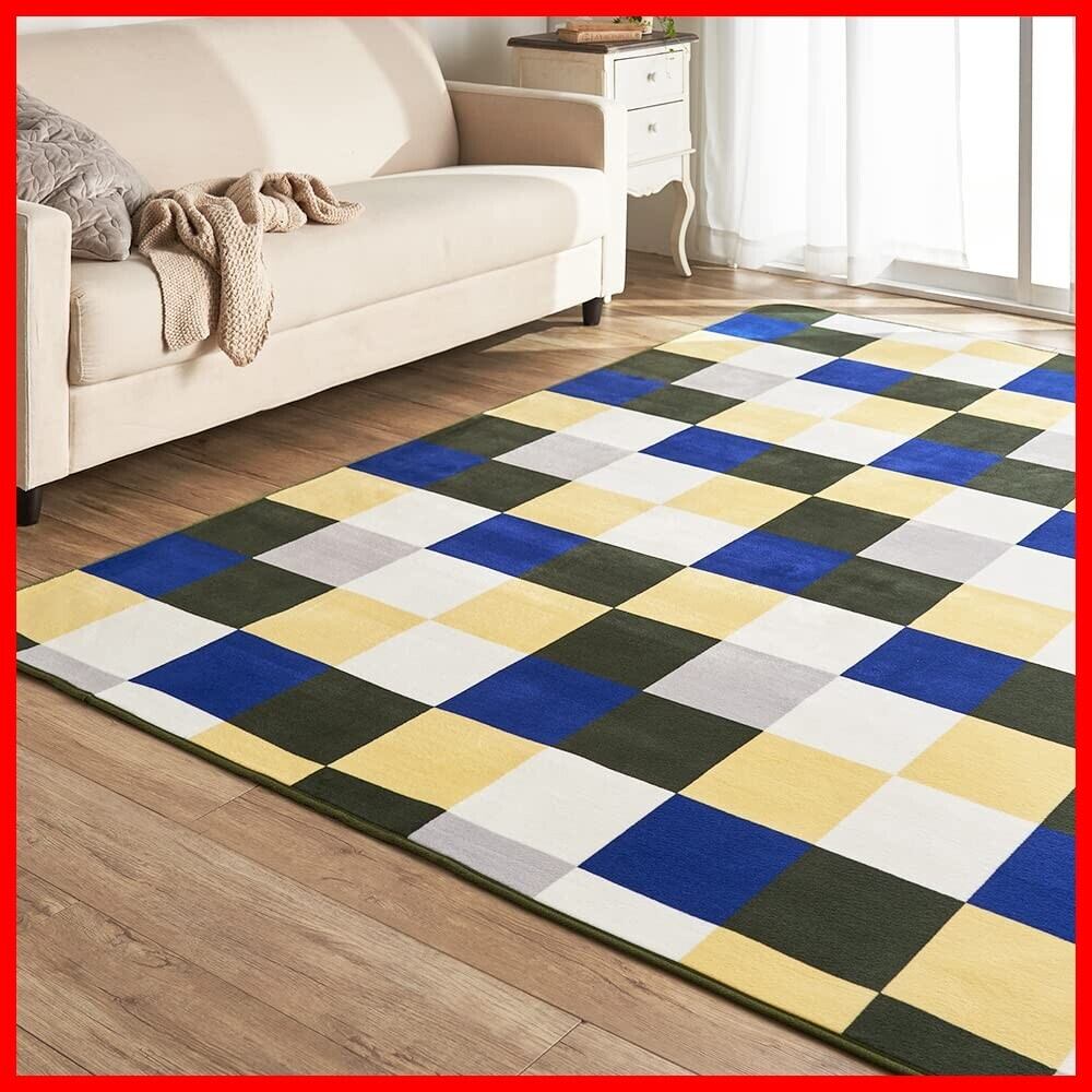 アイリスプラザ フランネルラグ スクエアグリーン 130×185㎝ 滑り止め付き ラグ 洗える ラグカーペット マット カーペット対応 防ダニ フランネル さらフワ触感 おしゃれ 北欧 じゅうたん