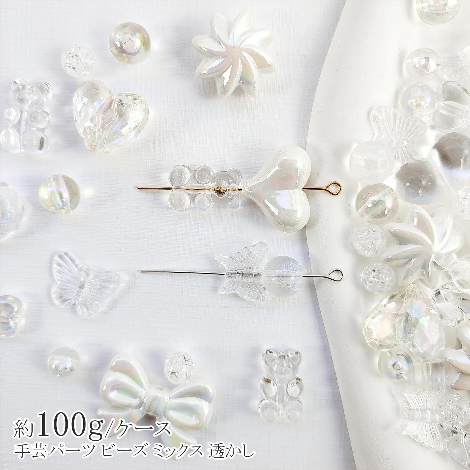 Harovo ビーズ ミックス 100g入り デコビーズ パーツ 透かしビーズ アクセサリー 手芸 ストラップパーツ ハンドメイド 材料 初心者向け 手芸ひも付き(ホワイト)