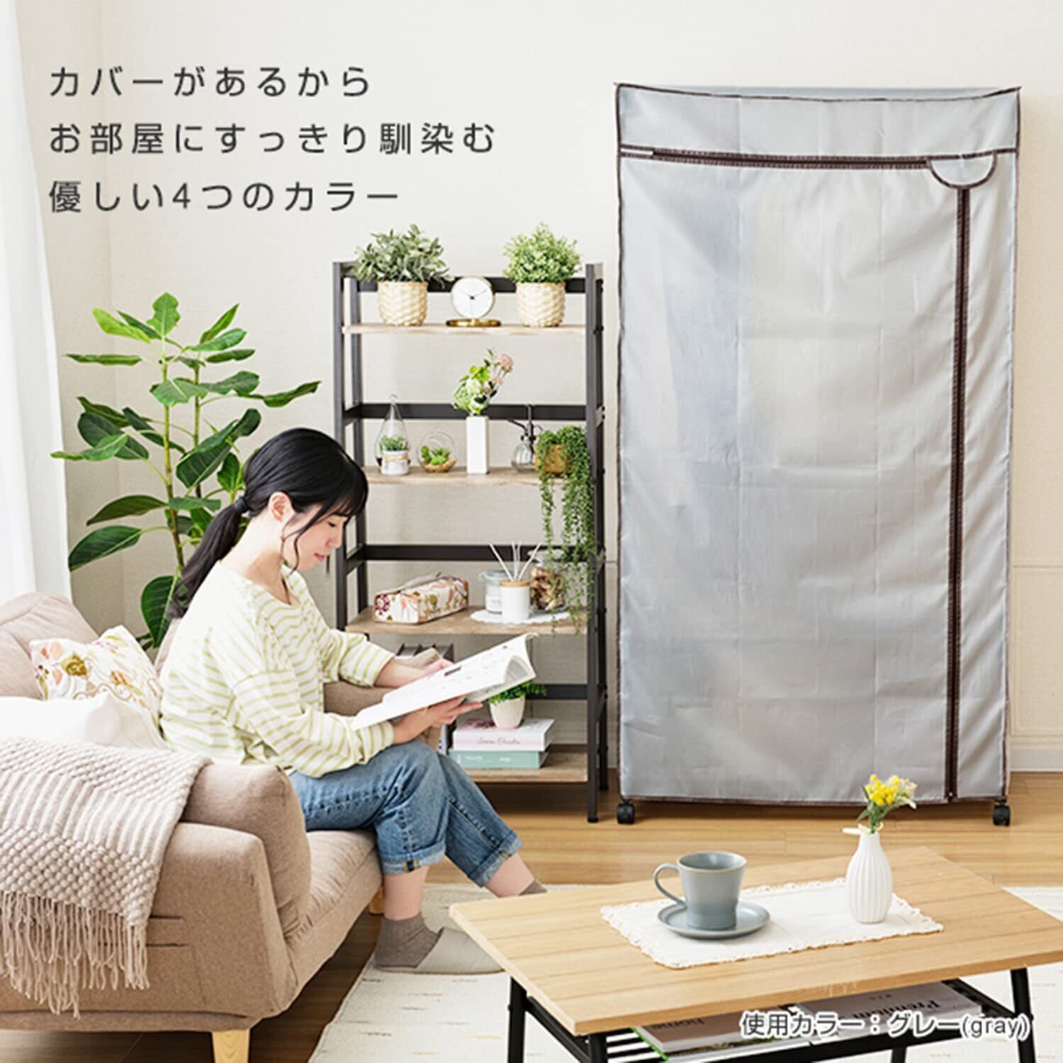 洋服も小物もカバンも手軽に収納できる カバー付きスチールハンガーラックです。