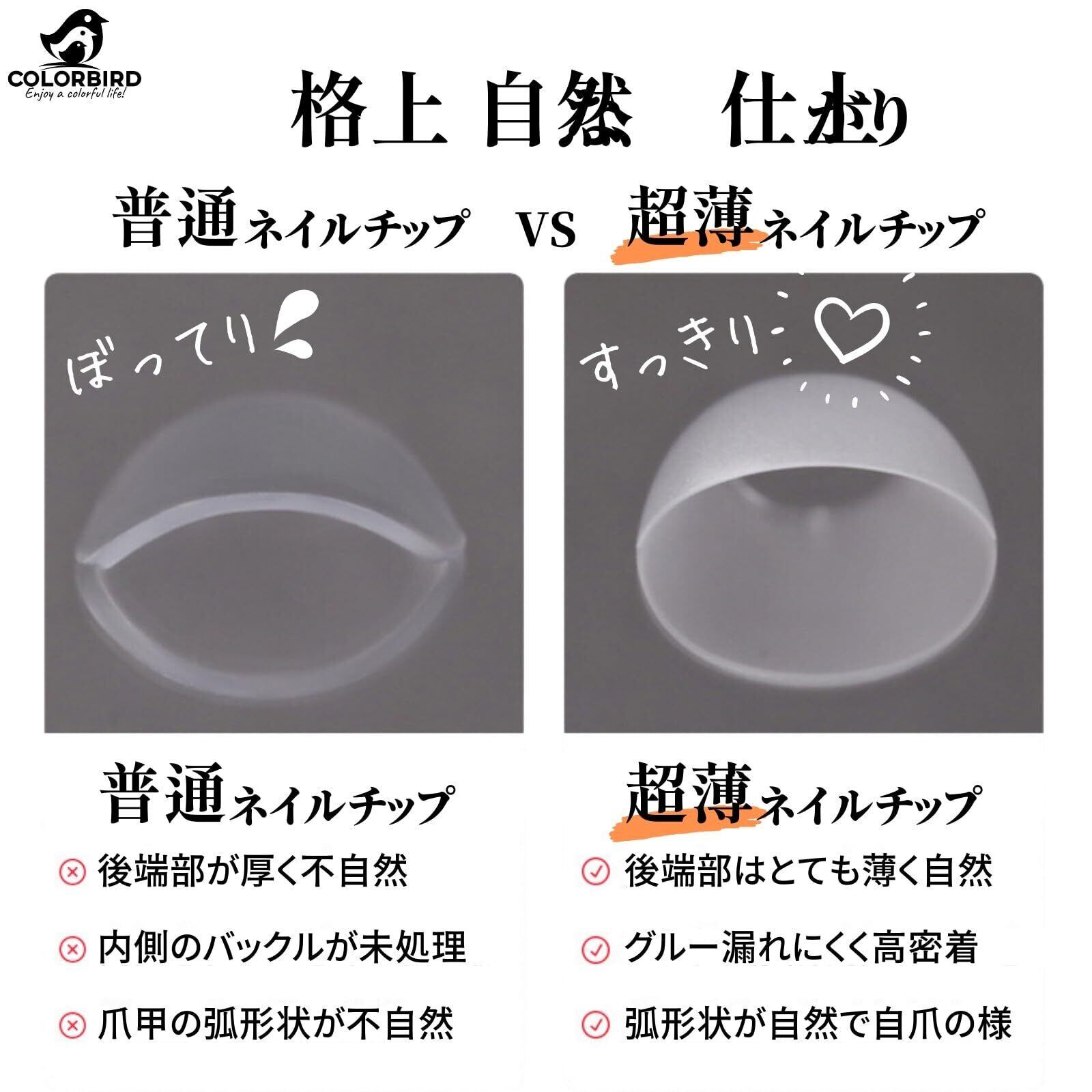 COLORBIRD ネイルチップ 超薄 ロング クリア サンディング 自然なフィット感 つけ爪 (ポイントL, 240pcs)