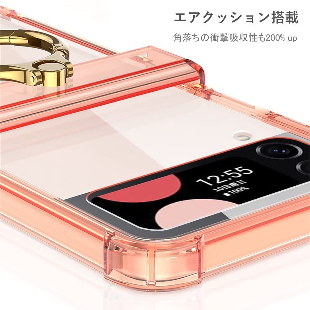 Galaxy Z Flip4 ケース クリア Samsung ギャラクシーZ フリップ 4 / docomo SC-54C / au SCG17 用 カバー リング付き ヒンジ保護 Uovon スマホケース 耐衝撃 スタンド機能 超軽量 超薄型 黄変防止 おしゃれ・クリア
