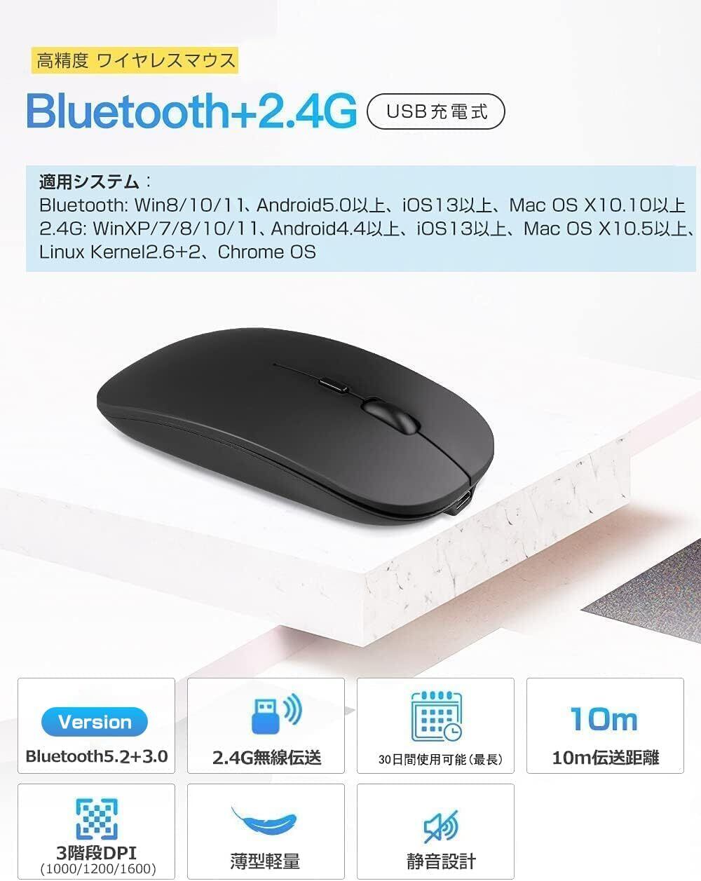 【bluetooth5.2/3.0+2.4Gマウス付き】 ワイヤレスマウスはbluetooth5.2/3.0も2.4Gも対応でき、最大10m通信距離、また、光学式なので、トラッキング性が向上し、高い読み取り性能を実現できます。用途に応じてカーソルのスピードを1000/1200/1600の三段階に手軽に切替可能です。クリック音を抑えたサイレントボタンを採用して、従来モデルより90%の騒音を軽減します。
