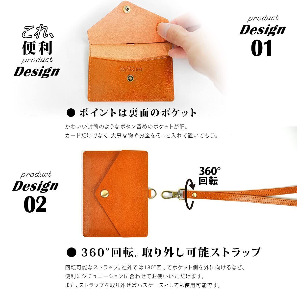 【余計な装飾をつけるよりもシンプルに】飽きのこない革本来の味を大切に仕上げました。携帯に便利なネックストラップ付属で、IDカード、社員証ケース、定期入れ、カードホルダー、パスケースなど、男性女性問わず、学生の通学用から、 社会人の通勤用まで幅広い年齢層の方に馴染むようなお洒落なデザインです。さりげない物だからこそ、自分のお気に入りを身に着けることで毎日がハッピーに。ポイントは裏面のポケット、可愛い封筒のようなボタン留めのポケットになっています。 カードだけでなく、大事なメモやお金をそっと入れておいてもOK。 人気 ブランド ならではのこだわりがつまったアイテムです。
