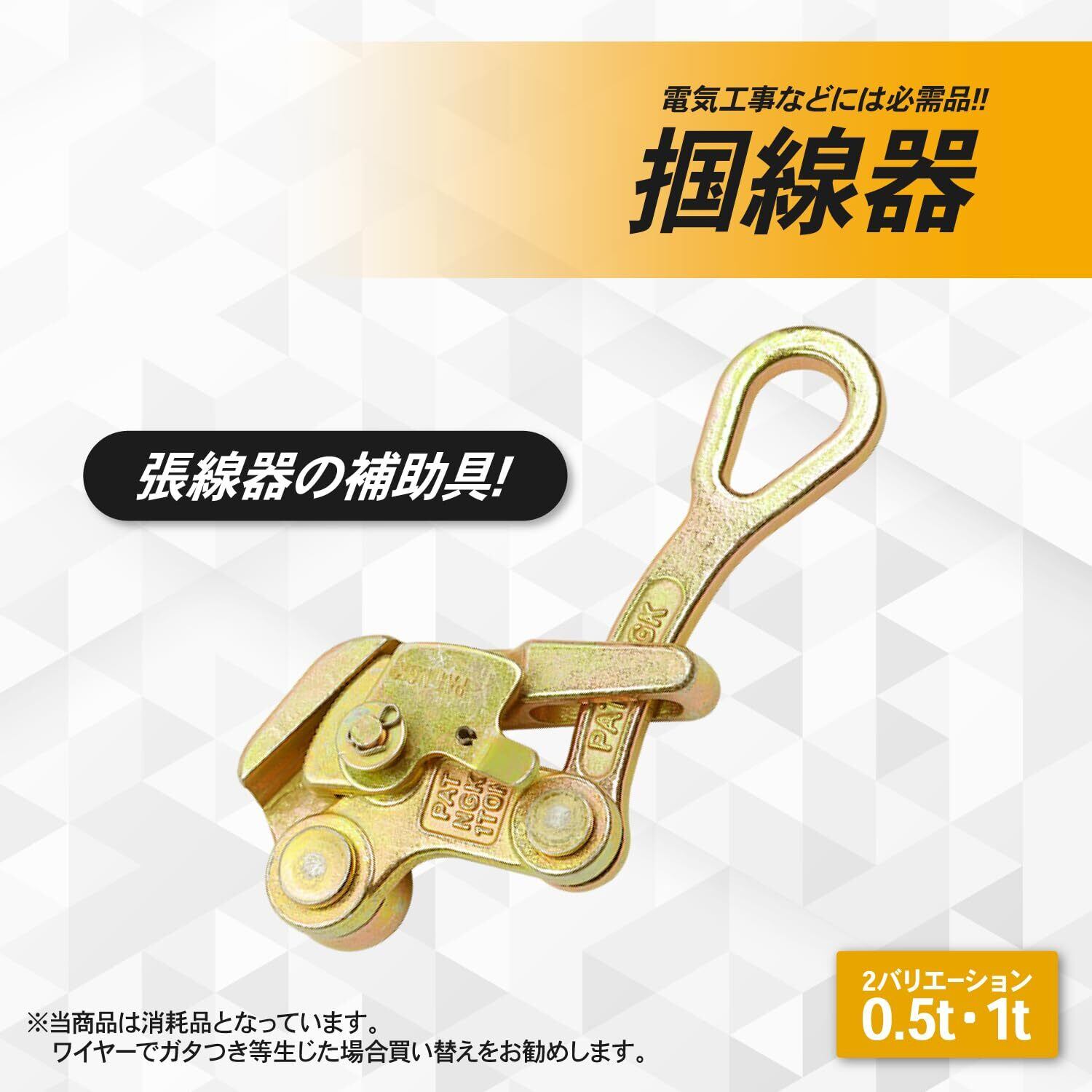 shymie カムラー 掴線器 張線器 シメラー 通線ワイヤー 引込線用チャック ワイヤー クランプ クリップ ロープ 工具 鋼撚線 電設 0.5 t トン