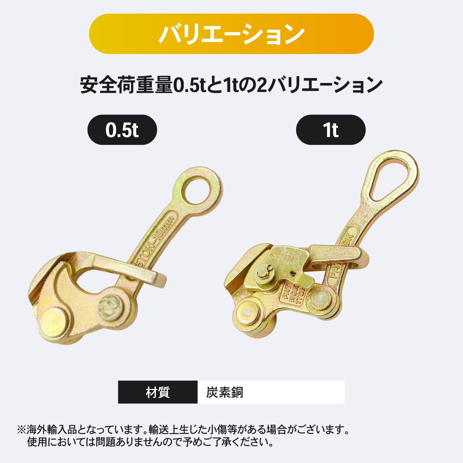 バリエーション:定量荷重0.5t(0.5トン)と1t(1トン)の2バリエーション