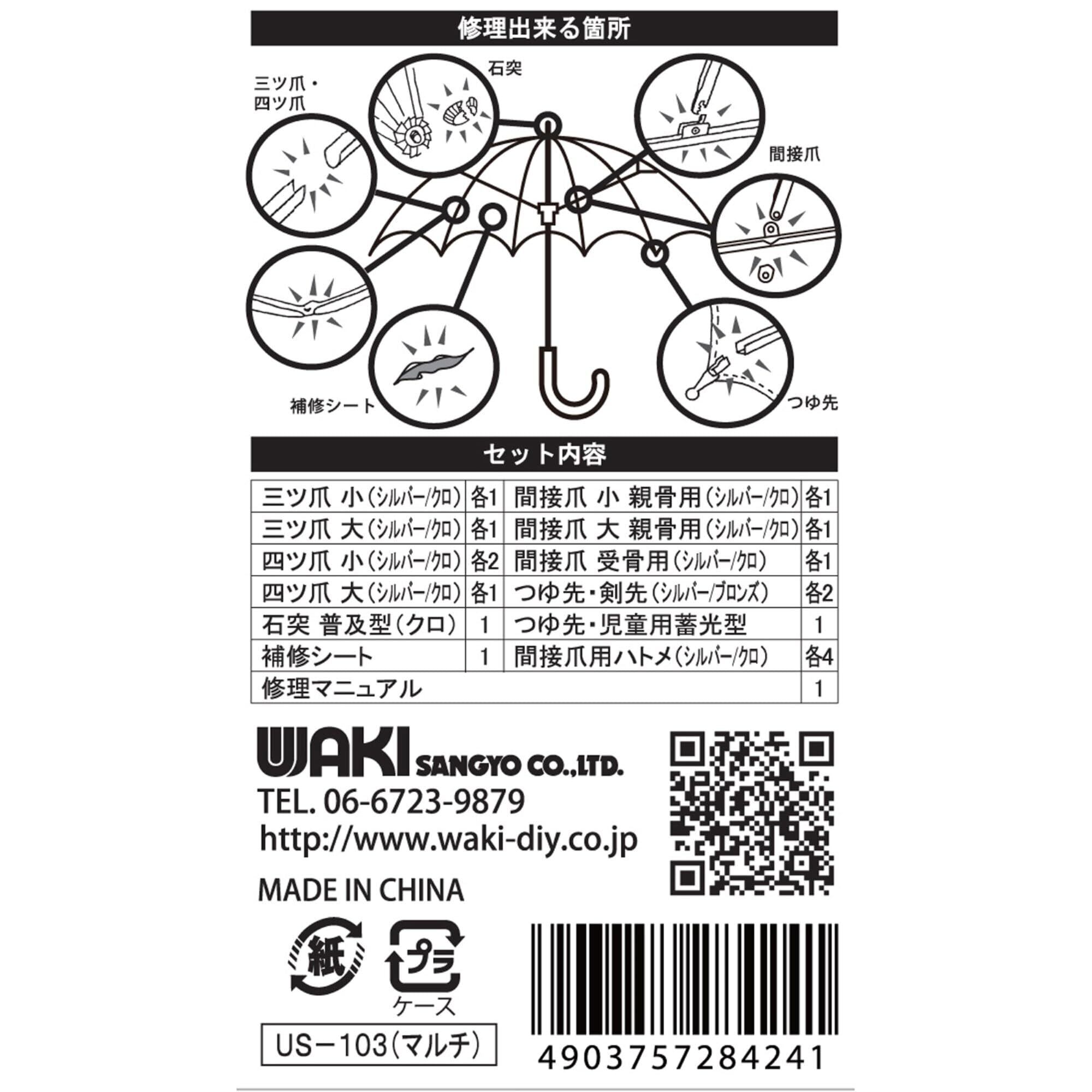 和気産業(Waki Sangyo) 傘修理セット 傘 部品 修理 US-103 (マルチ) 23点セット シルバー 黒 1.5×9.0×13.5cm