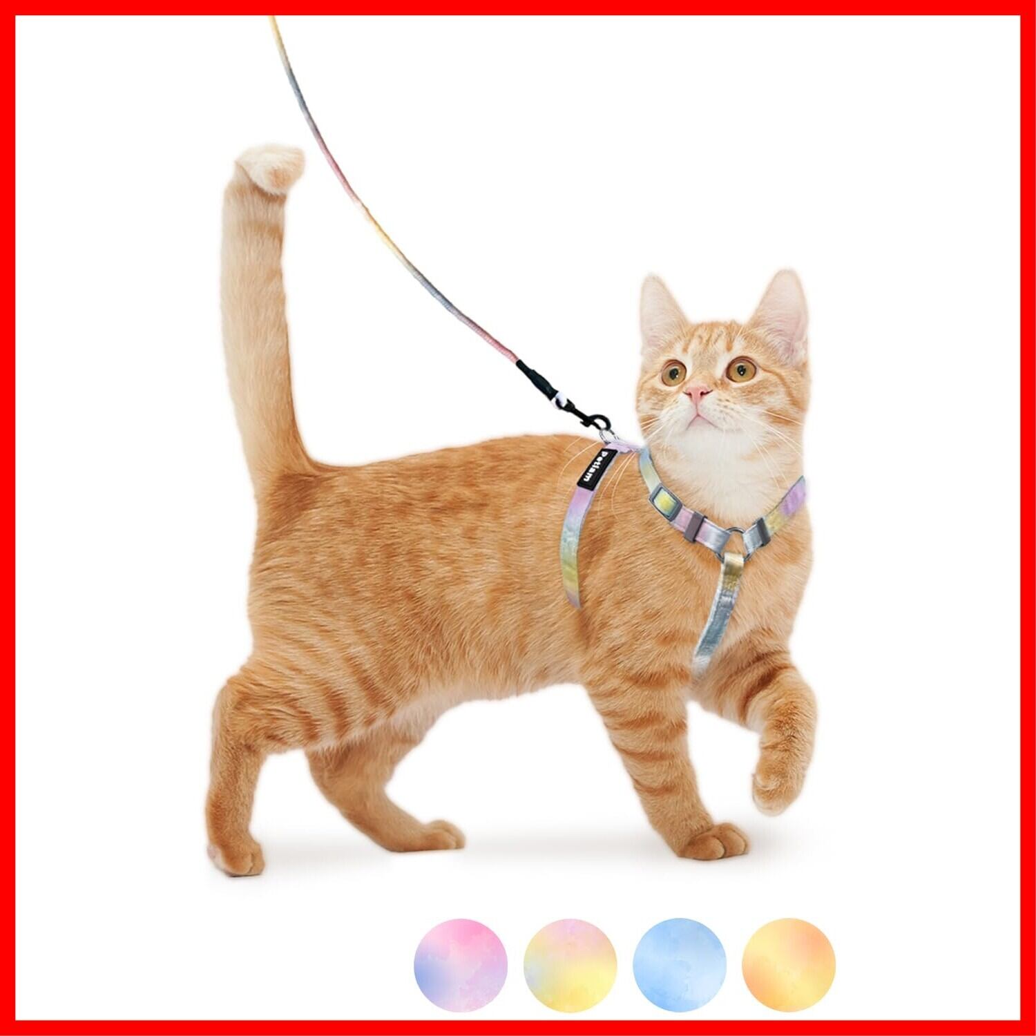 (シリーズ累計2万個突破) Petiam 猫 ハーネス リード 猫用 抜けない リードセット お散歩セット 紐タイプ (レインボー, M)