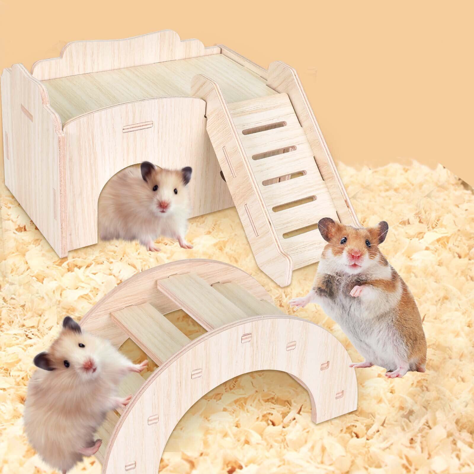 5点ハムスター ハウス おもちゃ ハムスターハウス 木製 小動物用 階建て 木製ペットの住宅 ハムスターの家 おもちゃ 木製 小動物 小屋 遊び場 ペット 遊び道具 運動不足解消 飼育ケージ ペット用品 動物小屋 住宅 小動物 遊び場 贈り物
