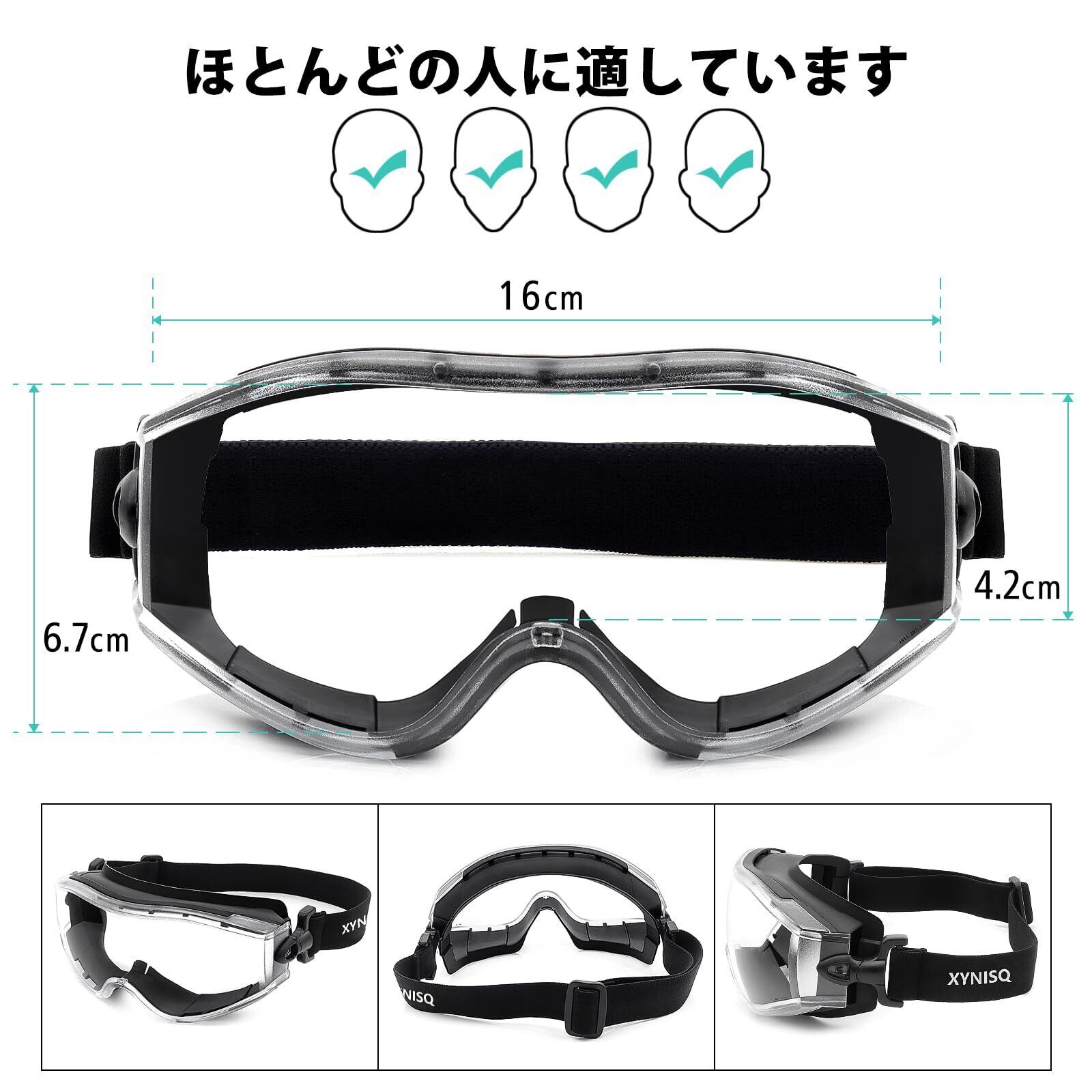 [XYNISQ] 安全ゴーグル 保護メガネ 作業用 実験用 防曇 防塵 防風 視界が広い 耐衝撃 透明レンズ 紫外線カット めがね併用可